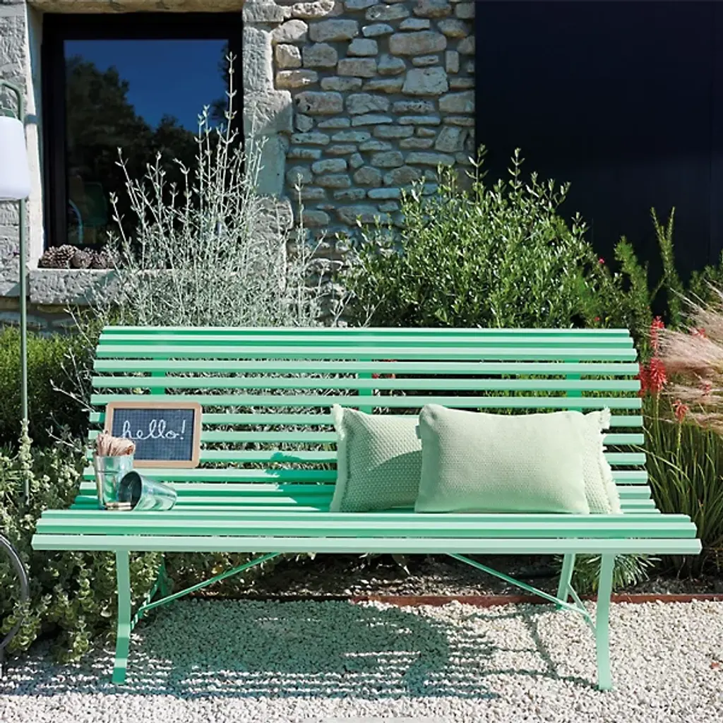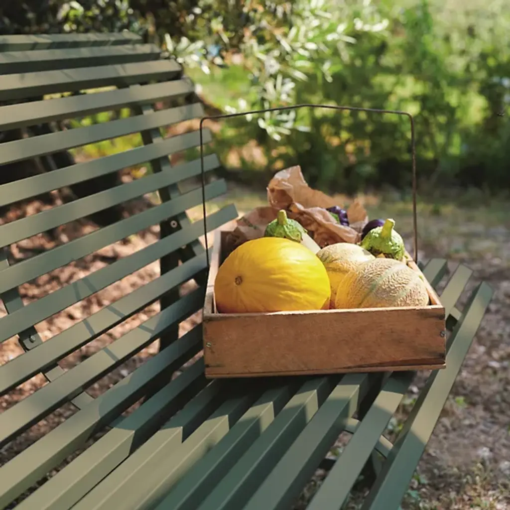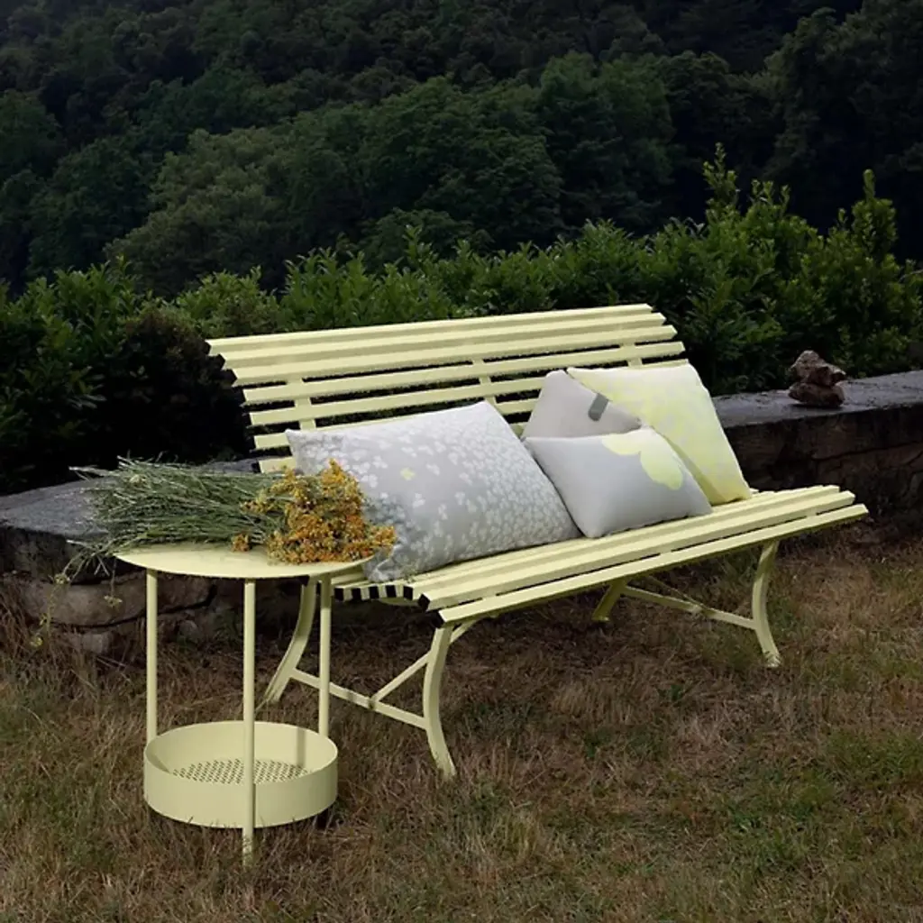 Who knew steel could look so soft? The seat and back of the Fermob Louisiane Bench are a single fluid wave of 20 galvanized steel slats attached to a curvaceous T flat steel frame. The precision of the curves ensures ergonomic comfort as well as a distinctive look. A wide array of powder coated finishes will keep Louisiane colorful and protected all year long.