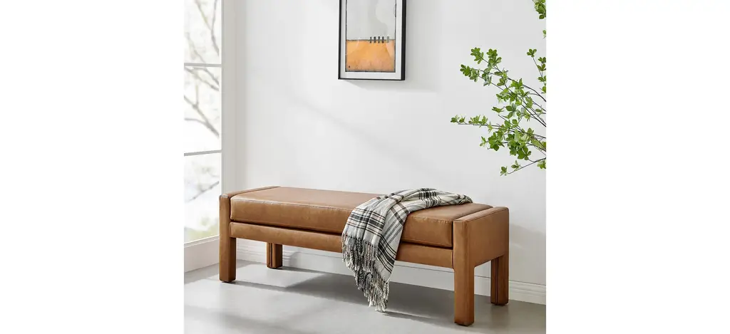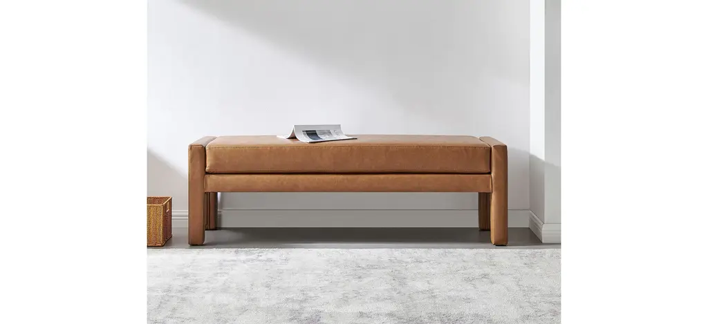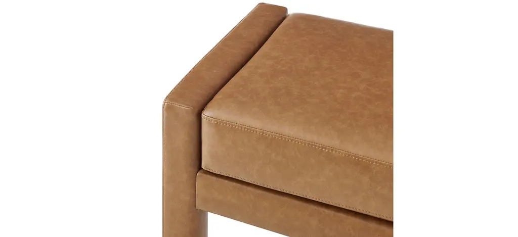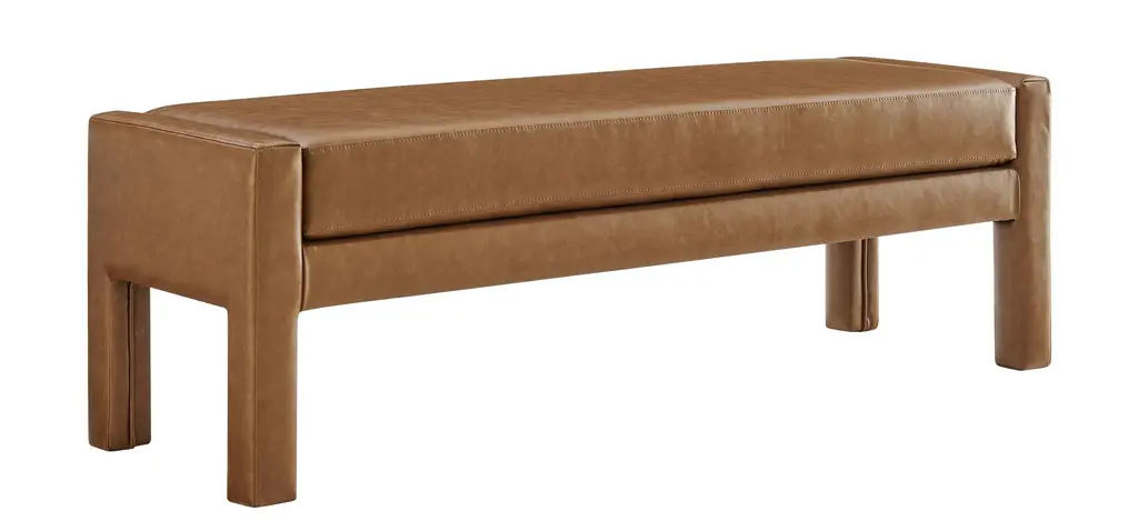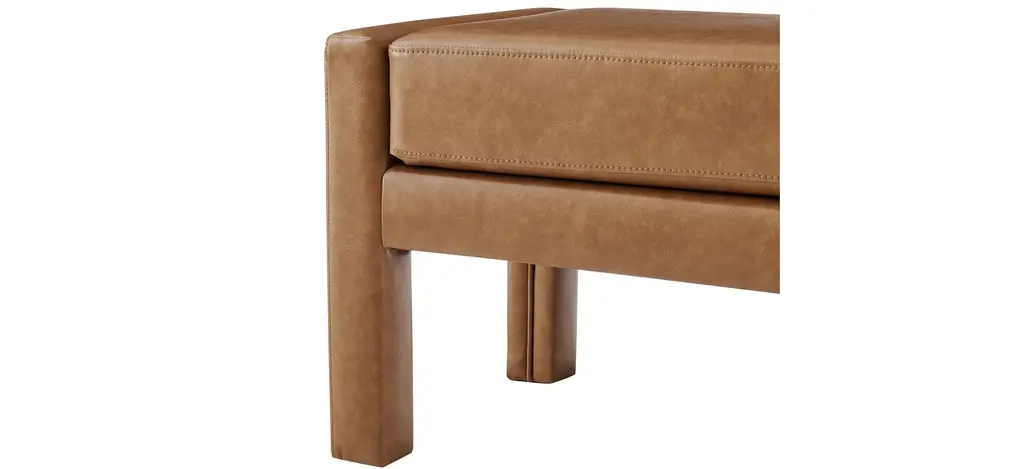 The Lucca Bench is amplified by the square & symmetrical format and an appealing faux leather cover in vintage cider tone. The simple line gives it a minimalist vibe that's elevating for the space. Incorporate it in spaces that need an instant uplift.