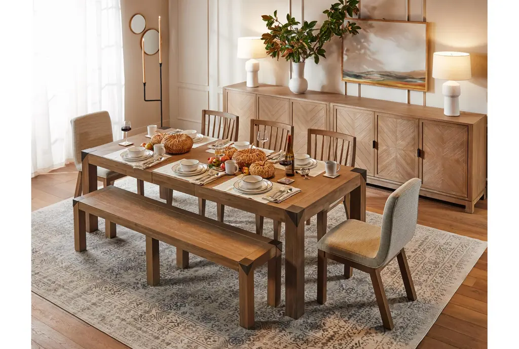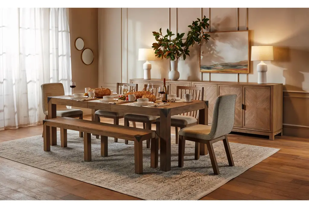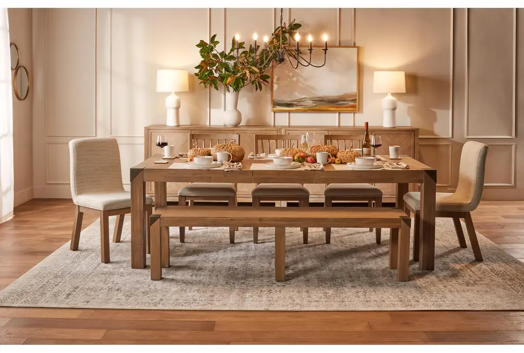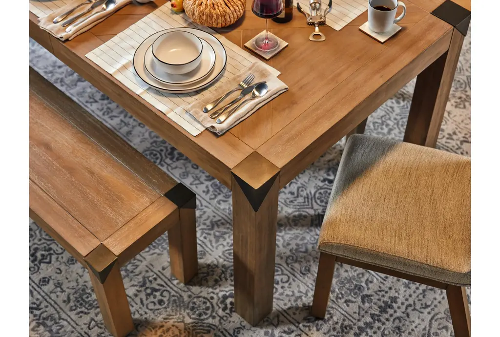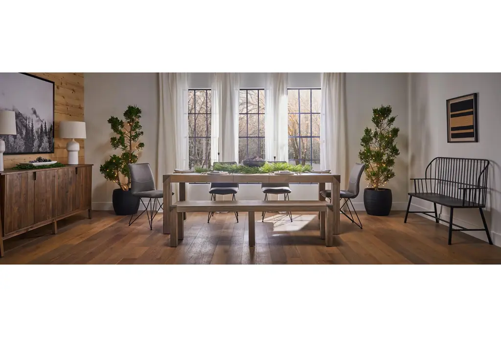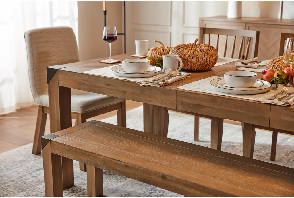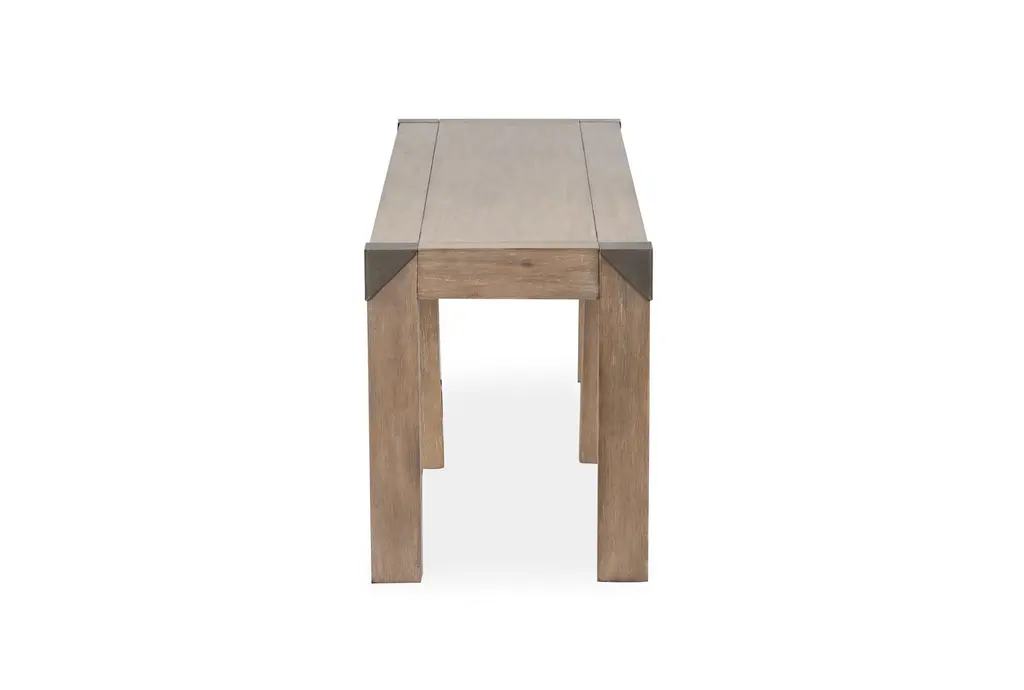 Add a touch of rustic charm to your dining room or kitchen with the Luis Naural Wood 73" Dining Bench. Featuring a cerused khaki finish, this bench is both stylish and functional. Its acacia wood construction ensures durability, while the metal caps add a modern twist.