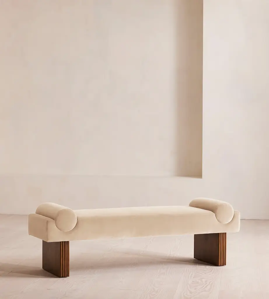 A comfortable cushioned seat is fully upholstered in Belgian-made linen and set on solid ash burl legs. Inspired by the coastal influences seen in Little Beach House Barcelona, the Lukas bench has a minimalist silhouette set on ash burl legs. Designed to be positioned at the end of your bed, it has a cushioned top that's fully wrapped in 100% Belgian linen available in a range of our bespoke shades.