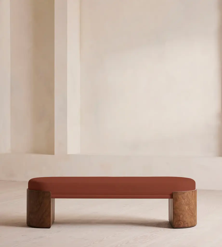 A comfortable cushioned seat is fully upholstered in Belgian-made linen and set on solid ash burl legs. Inspired by the coastal influences seen in Little Beach House Barcelona, the Lukas bench has a minimalist silhouette set on ash burl legs. Designed to be positioned at the end of your bed, it has a cushioned top that's fully wrapped in 100% Belgian linen available in a range of our bespoke shades.
