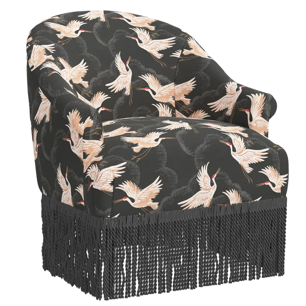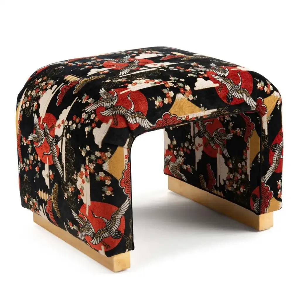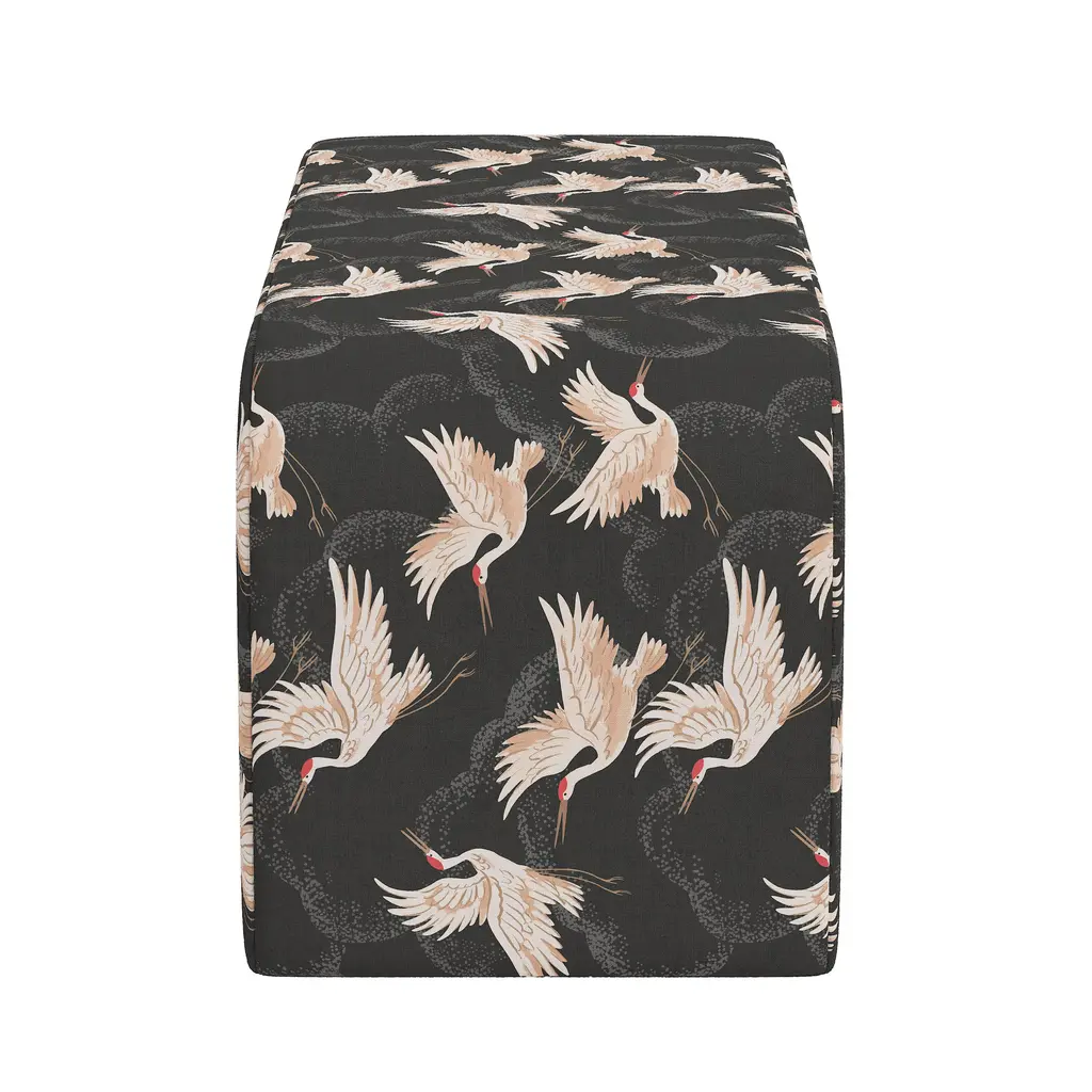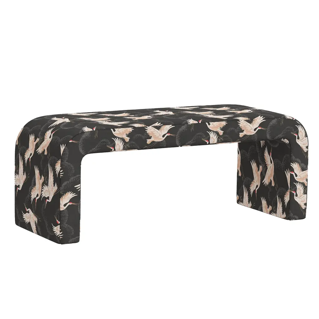 This bench creates a relaxing and comfortable atmosphere wherever you place it – in the living room, at the foot of your bed or along the wall of an entryway. Fully upholstered from top to bottom with a Bird fabric. This bench is as stylish as it is functional. Made to order and manufactured in Illinois. Care Instructions: Spot Clean Only