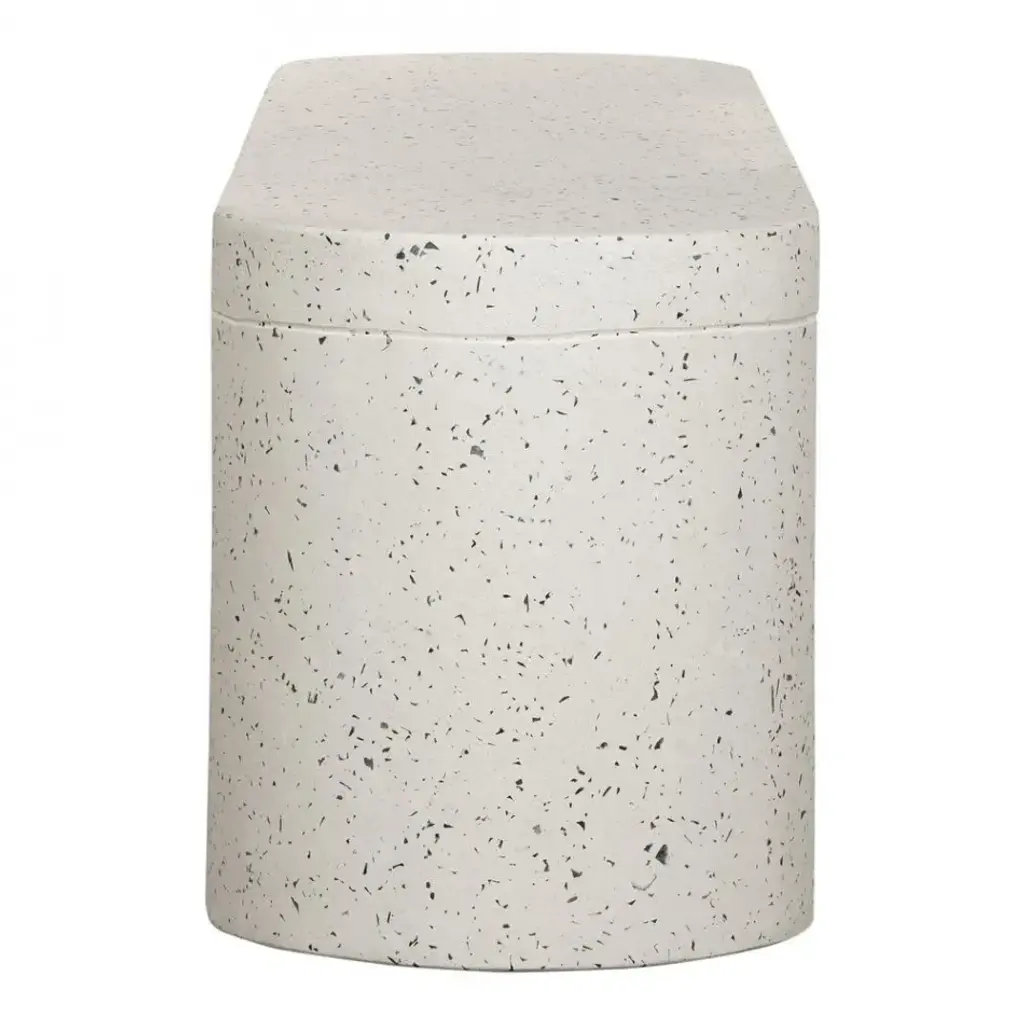 Perfect for an open-plan garden or patio setting, this spacious bench’s rounded geometric shape contrasts so well within an organic environment. Smooth and minimal, it is constructed in a unique concrete terrazzo composite that focuses on the natural beauty of minerals with its speckled, contemporary aesthetic.