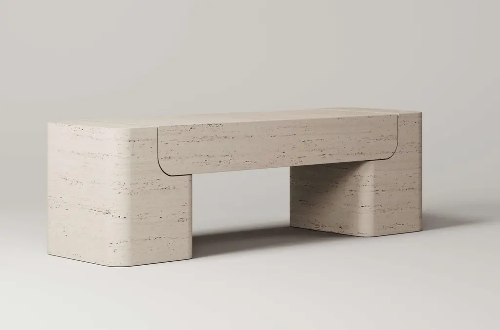 Crafted from 3 precisely carved blocks, the curved figure of the M_005 Bench emphasizes the connection between its parts. Its soft curves playfully bend the structure, its engineering reflecting the architectural elegance of a simple bridge. Suitable for indoor / outdoor use. Customization available upon request.Numbered and SignedGiven the unique nature of stone, each piece will vary in look.Also available in Travertine, Oak, and Walnut.