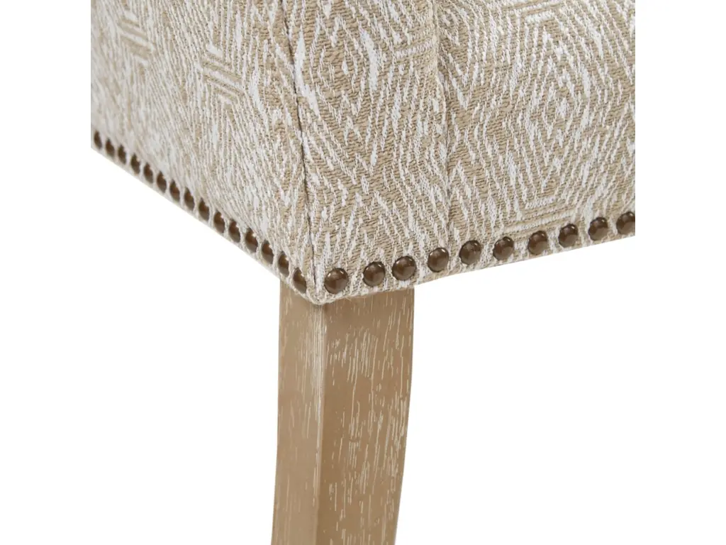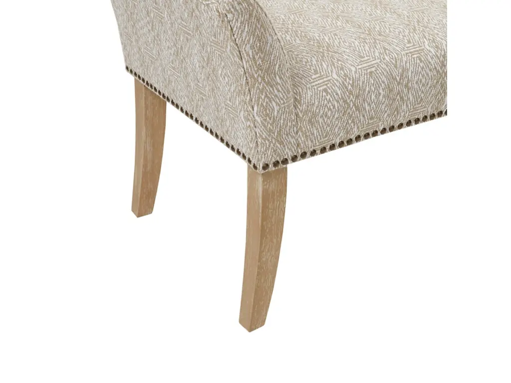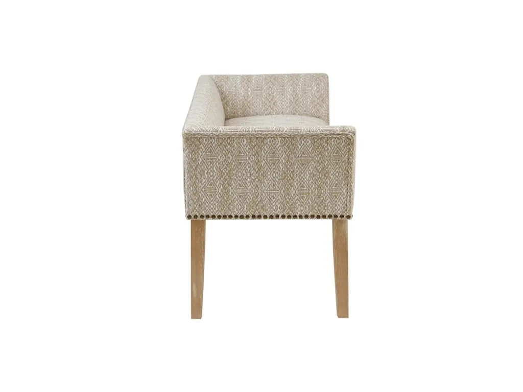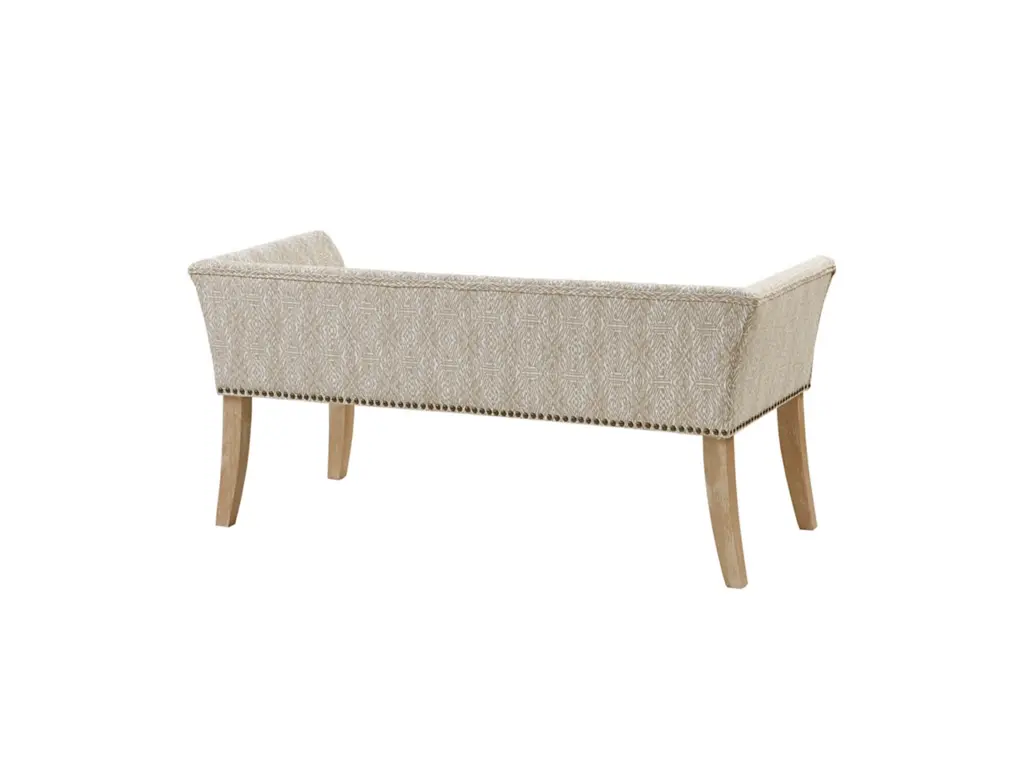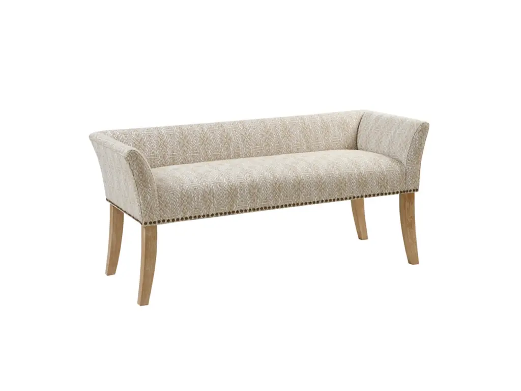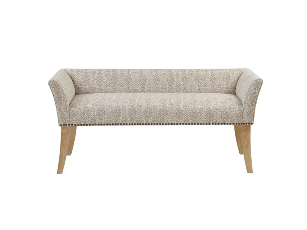Accent your home with the simple elegance of the Madison Park Welburn Accent Bench. Upholstered in a multi-hued taupe fabric, this bench features a low back and flared arms that create a sleek and sophisticated look. A bronze nail head trim adds elegant accent, while the light wood finish complements the upholstery. Perfect for your bedroom or living room, this upholstered bench provides a chic update to your home decor. Assembly required.
