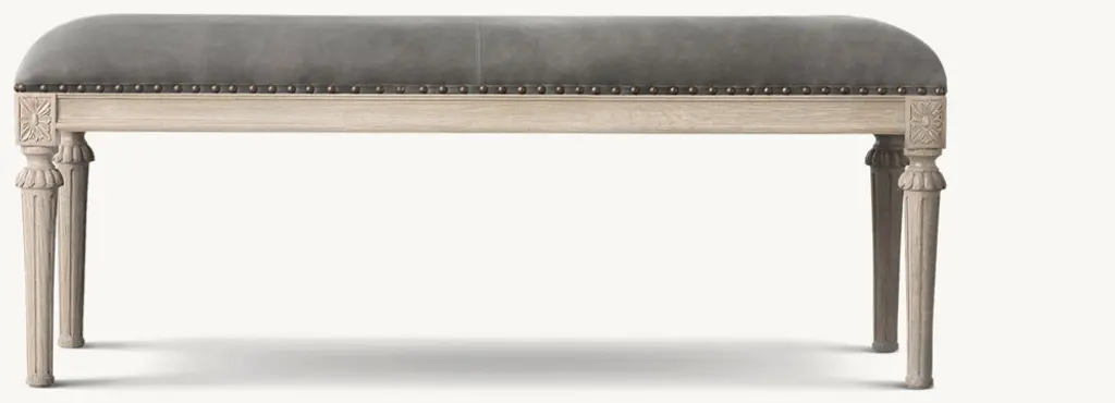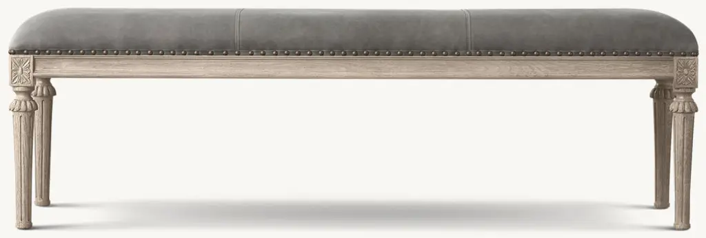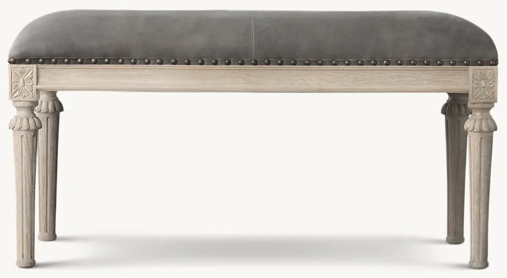 Inspired by late 18th-century French furnishings, we've captured the linearity and rectangular forms associated with that period. Crafted of hardwood and richly upholstered, each piece is carefully distressed using a hand-applied multistep process to achieve the look of a weathered antique. The tapered, slightly turned legs are fluted, a reference to Classic columns. ALSO AVAILABLE IN FABRIC