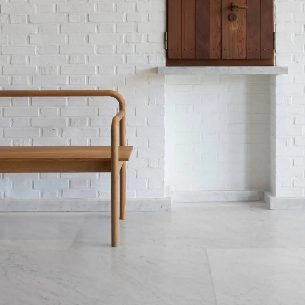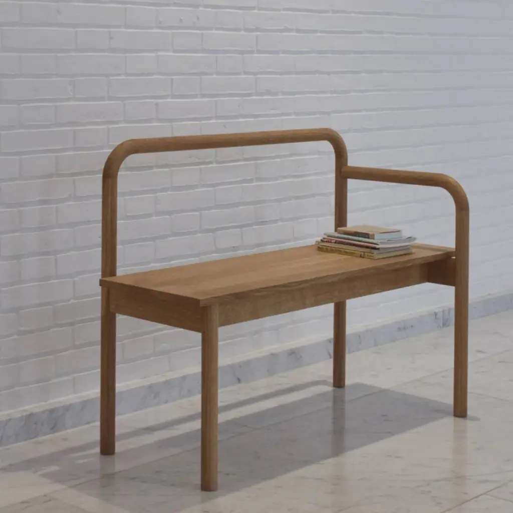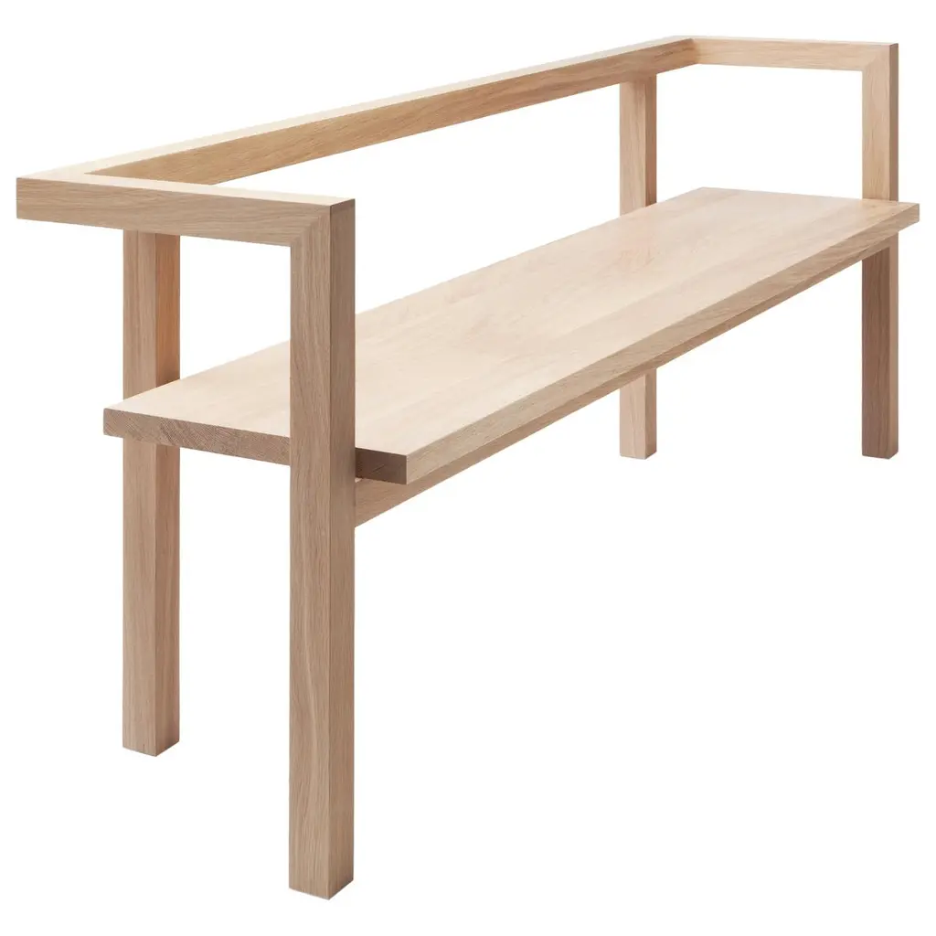 Finland-based designers Wesley Walters & Salla Luhtasela plumb the past with this wood bench inspired by old handrails and industrial machinery. Maissi’s narrower proportions particularly suit placement in a hallway for welcoming guests or as an unusual extra seat in a living space. Crafted in FSC-certified oak, the wood is left in its pale untreated state to emphasize the subtle grain.