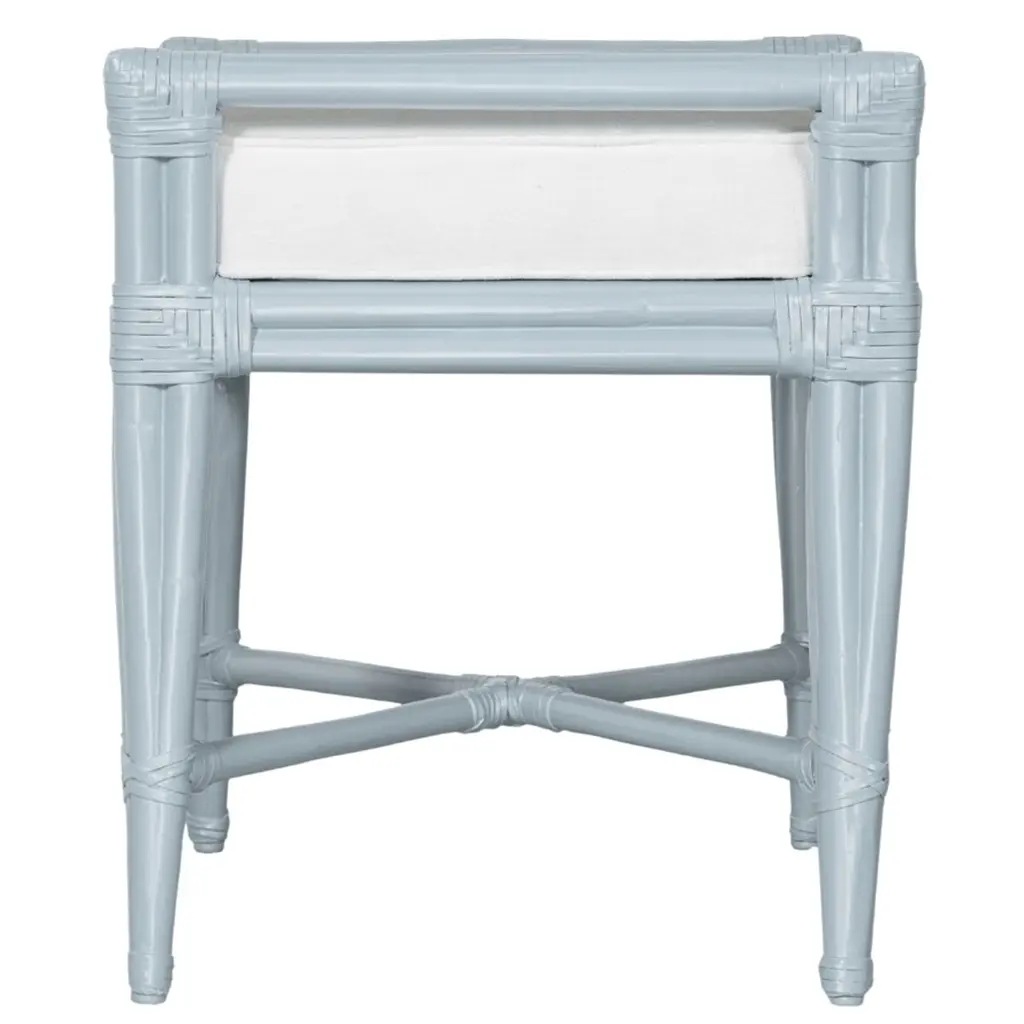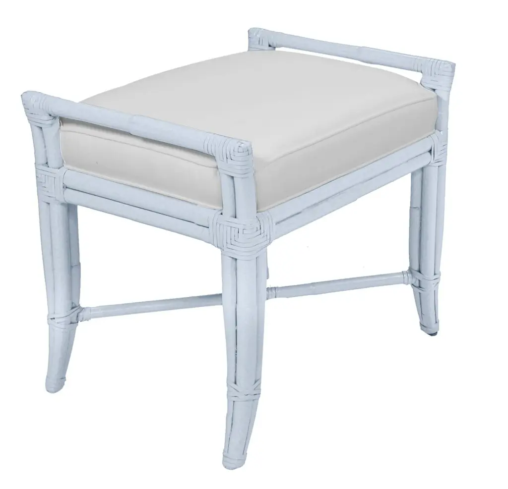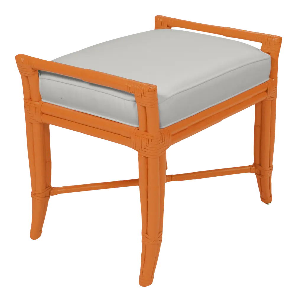 The sophisticated design of the Malacca Bench will complement any space. Hand-crafted with natural Rattan and leather-wrapped bindings to add strength and stability. The tightly boxed seat cushion is covered in InsideOut Performance Fabric. This bench is available in two wonderful sizes. Each piece is finished and upholstered to order at our Florida factory. Show off your style with this timeless design that is finished to order just for you!