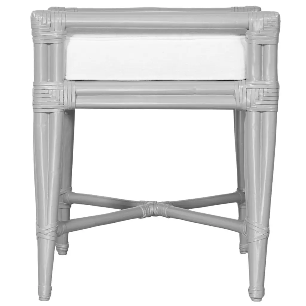 The sophisticated design of the Malacca Bench will complement any space. Hand-crafted with natural Rattan and leather-wrapped bindings to add strength and stability. The tightly boxed seat cushion is covered in InsideOut Performance Fabric. This bench is available in two wonderful sizes. Each piece is finished and upholstered to order at our Florida factory. Show off your style with this timeless design that is finished to order just for you!