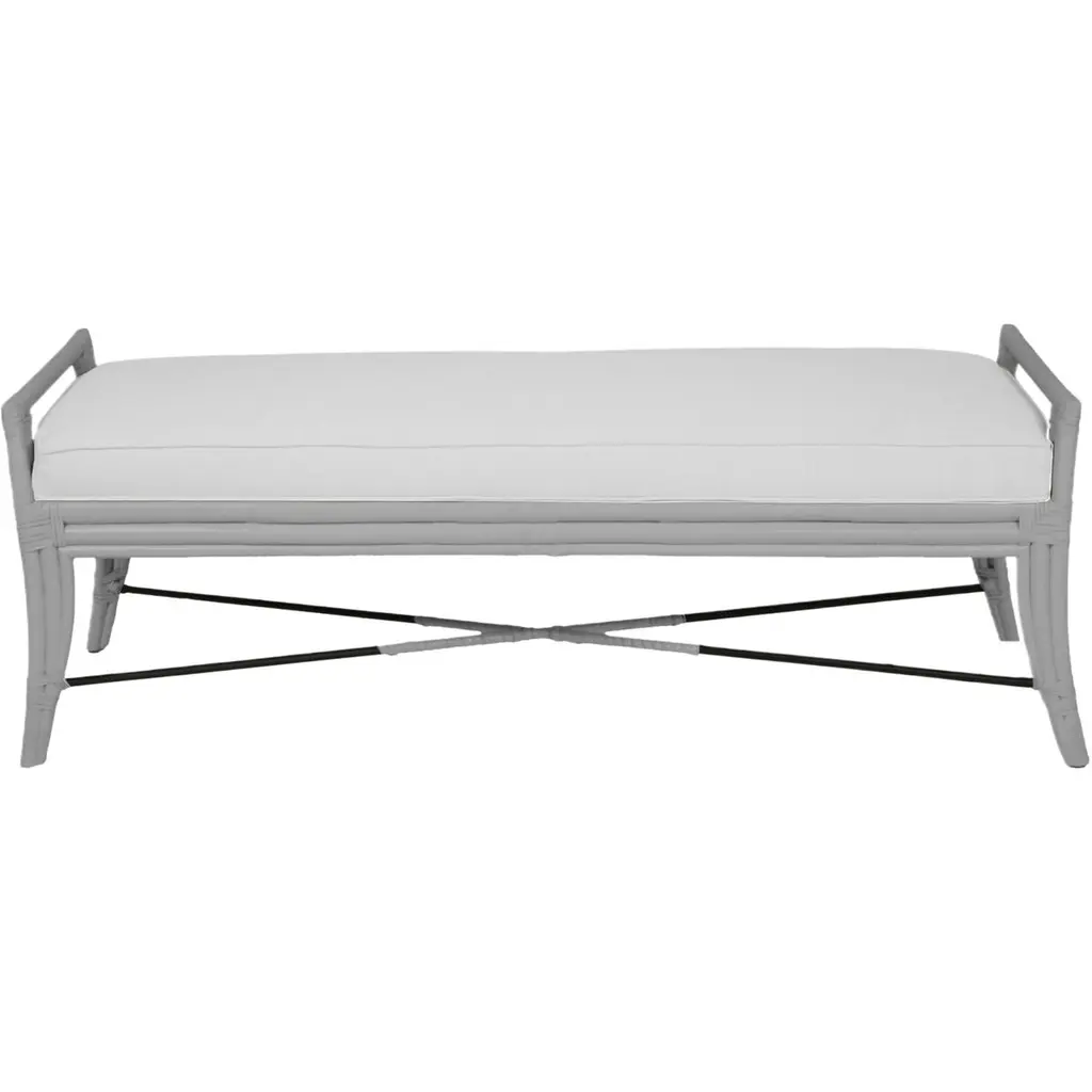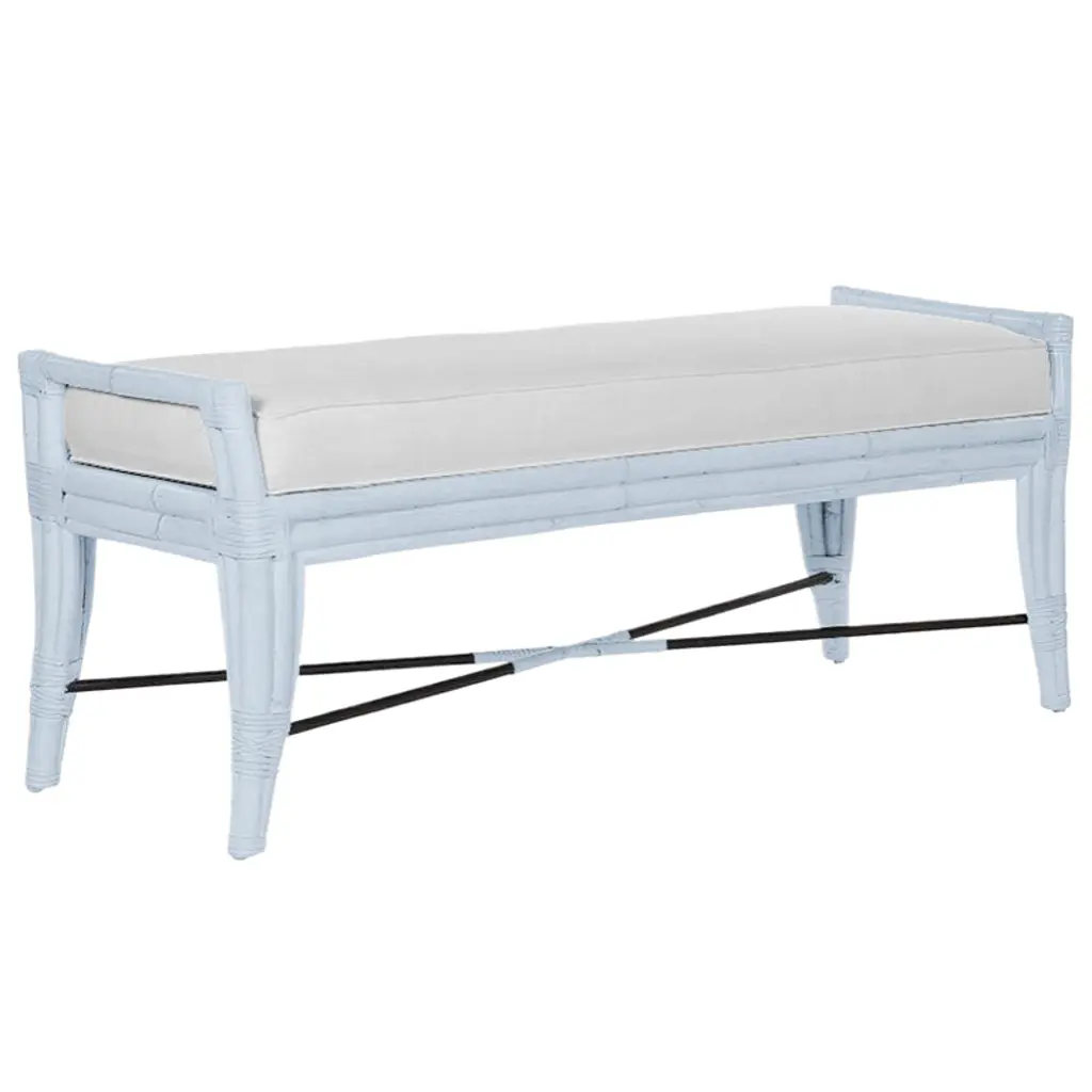 The sophisticated design of the Malacca Bench will complement any space. Hand-crafted with natural Rattan and leather-wrapped bindings to add strength and stability. The tightly boxed seat cushion is covered in InsideOut Performance Fabric. This bench is available in two wonderful sizes. Each piece is finished and upholstered to order at our Florida factory. Show off your style with this timeless design that is finished to order just for you!