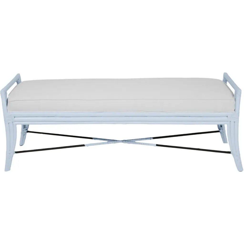 The sophisticated design of the Malacca Bench will complement any space. Hand-crafted with natural Rattan and leather-wrapped bindings to add strength and stability. The tightly boxed seat cushion is covered in InsideOut Performance Fabric. This bench is available in two wonderful sizes. Each piece is finished and upholstered to order at our Florida factory. Show off your style with this timeless design that is finished to order just for you!