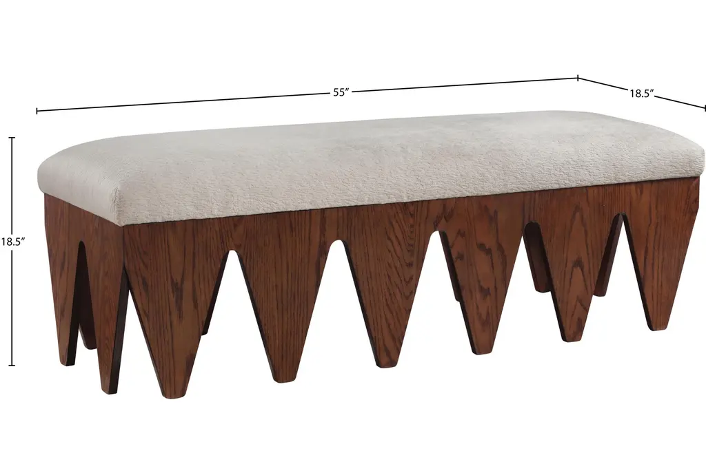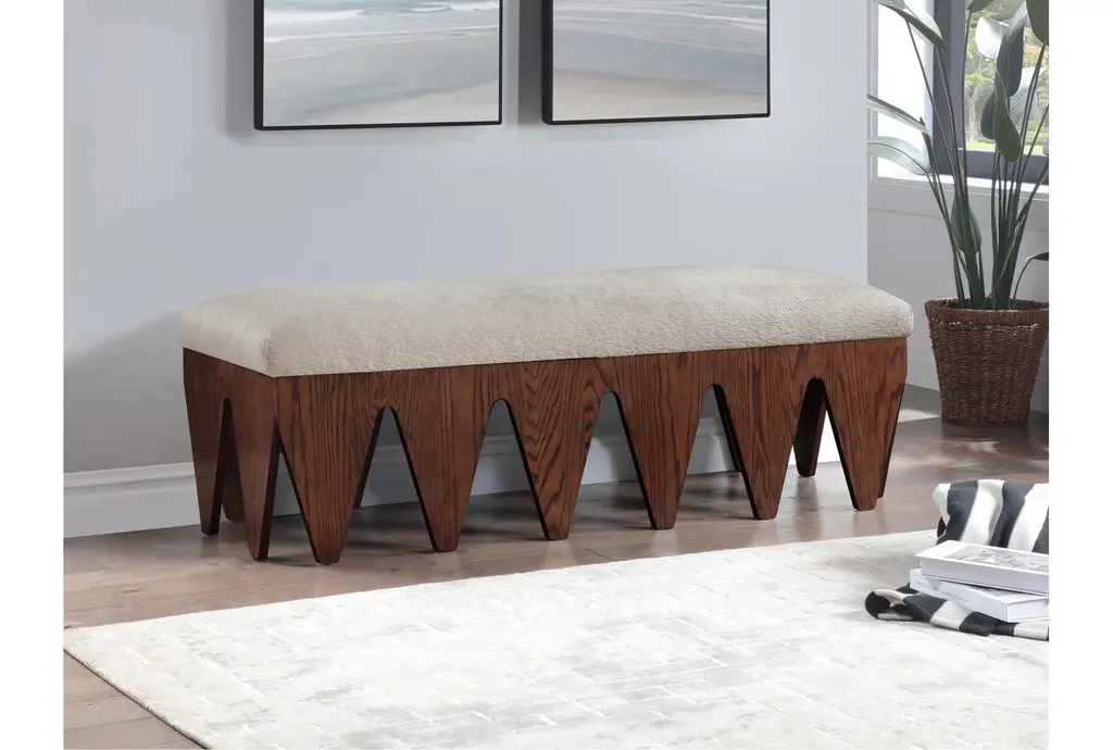 The Malori Modern Beige 55" Accent Bench is a stylish and functional addition to any modern home. Its soft beige velour fur fabric provides a luxurious seating experience, while the rich brown walnut finish adds a touch of elegance. The unique art deco design and oak veneer construction make this bench a standout piece in any room.