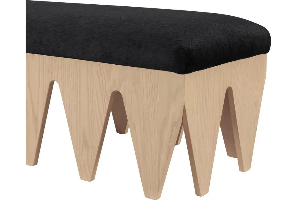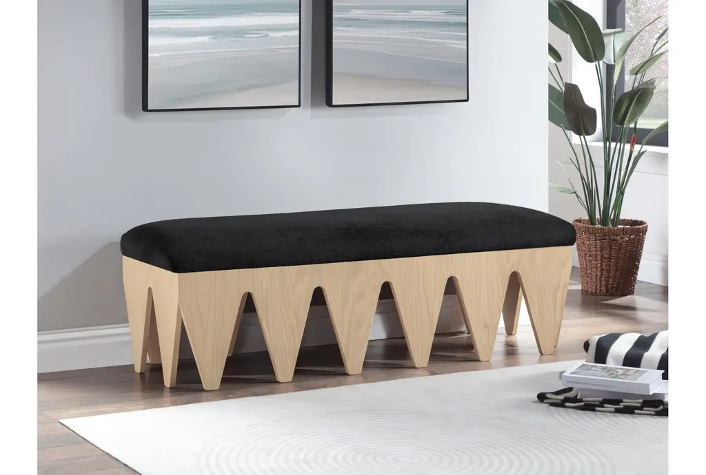 Add a touch of modern sophistication to your entryway with the Malori Modern Black 55" Accent Bench. Perfect for any bedroom or living room, this bench combines sleek design with functional seating. Its striking conical legs and armless structure make it a standout piece in any contemporary home.
