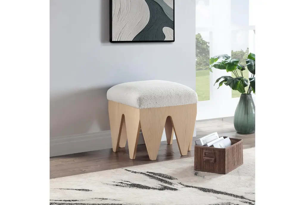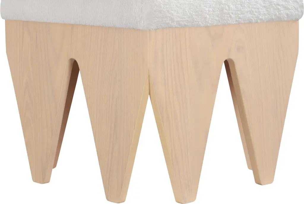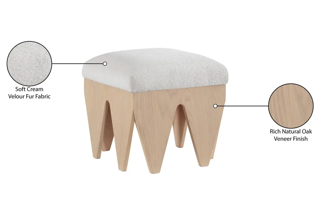 The Malori Modern White 19" Accent Bench is a stylish and functional addition to any room. Its modern design is complemented by a soft cream velour fur fabric, making it both comfortable and visually appealing. The rich natural finish and oak veneer add a touch of rustic charm to this versatile piece.