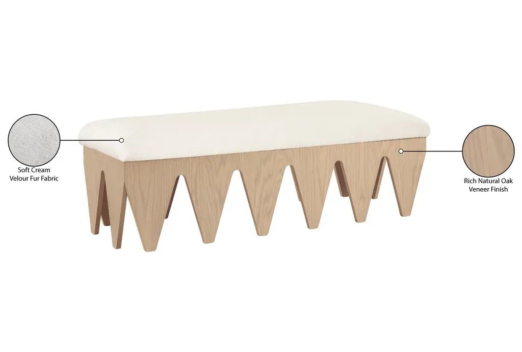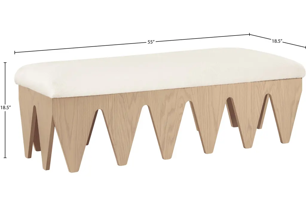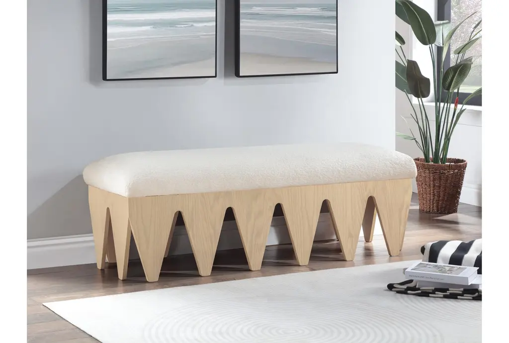 The Malori Modern White 55" Accent Bench is a perfect addition to any entryway or living space. Its sleek design and cream velour fur fabric offer a touch of modern sophistication. The plywood frame ensures durability and stability, making it a practical choice for high-traffic areas.