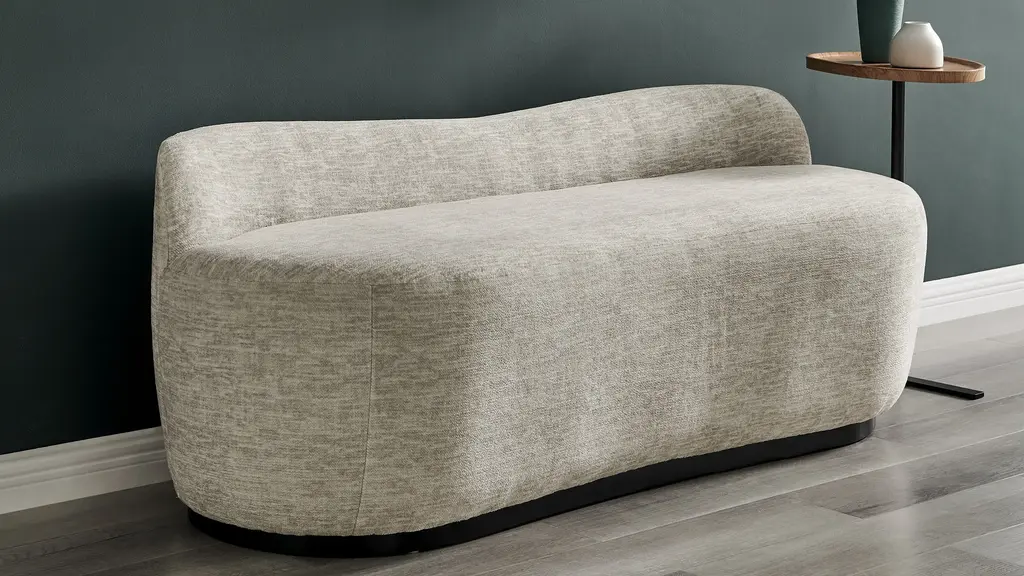 Mandy bench is inspired by the gentle curve of the crescent sofa. With whimsicality and chunky appeal, this decorative piece does double duty for charming up an empty space and for casual seating in the foyer. Fully Assembled. Available in Pasadena Beige and Pasadena Taupe.