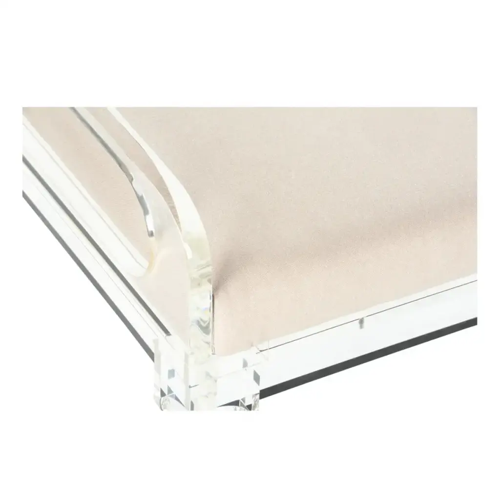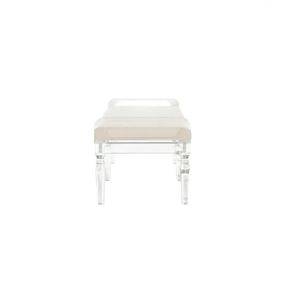 Bring a modern touch with a classic feel. The Masters Acrylic Bench is upholstered in a neutral muslin cloth with a sophisticated shape in clear acrylic. Designed by Bill Cain.