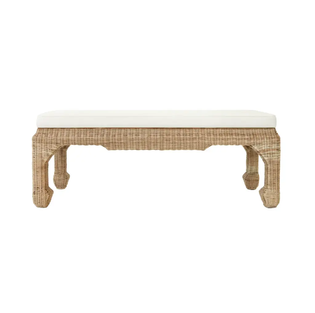 Matthew Izzo Home - Massey Upholstered Ivory Linen And Rattan Ming Style Bench