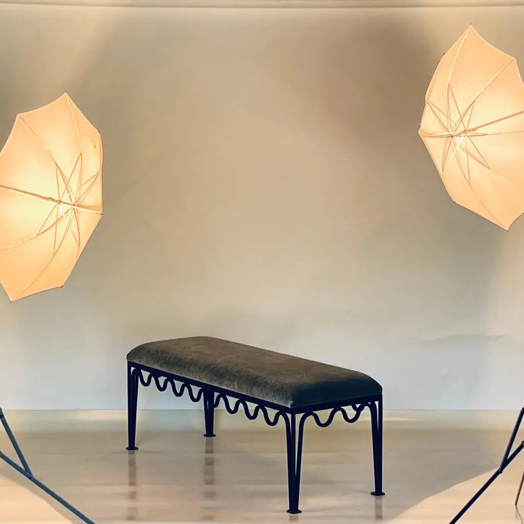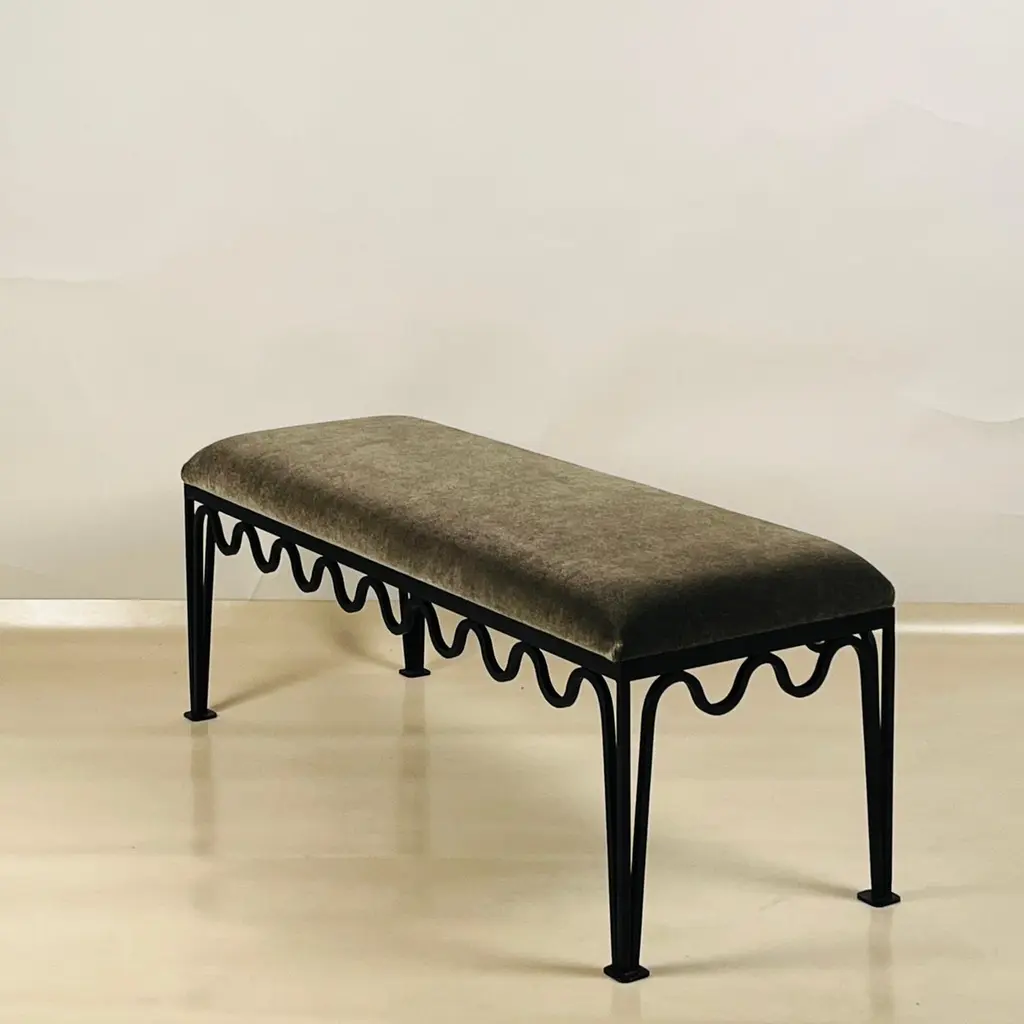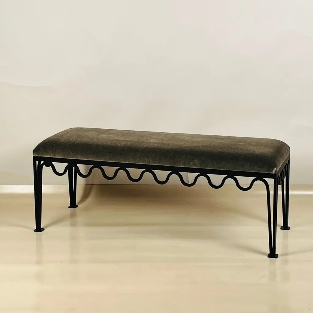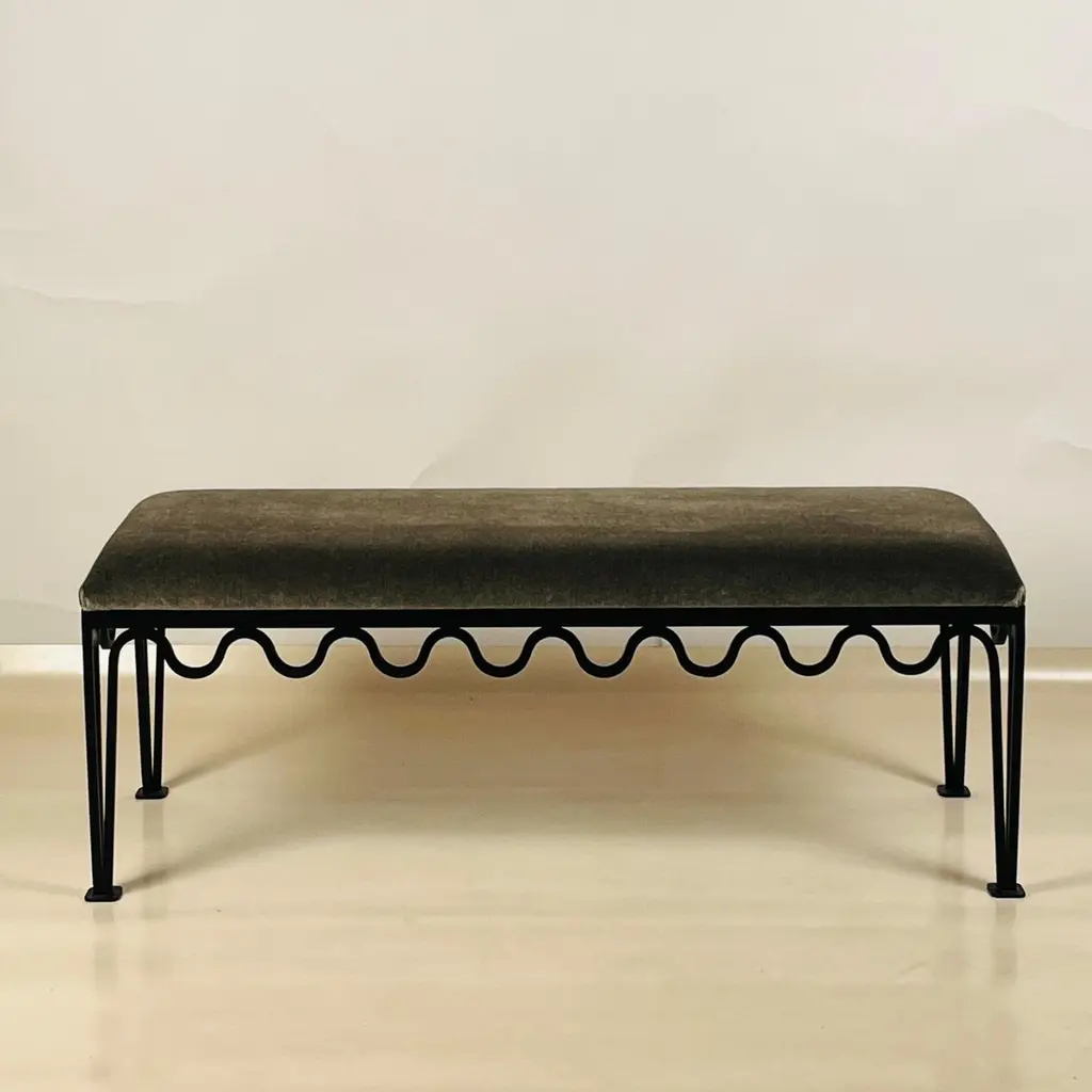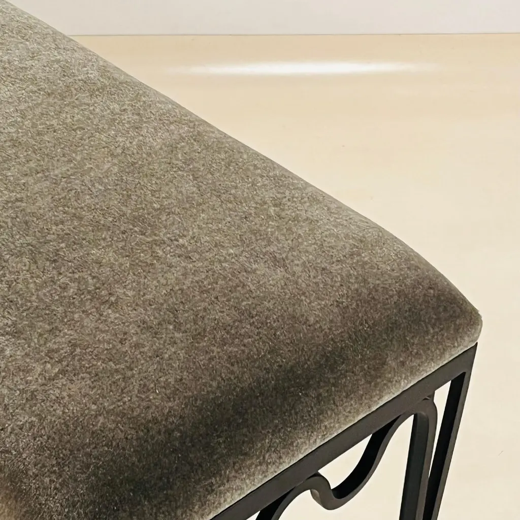 The Méandre™ bench by DESIGN FRÈRES in mohair velvet or COM.Upholstered firm in mohair velvet (specify color) or provide COM (1 yard). Mohair velvet is extremely durable and resists dirt and crushing. If a piece is going to be heavily used, mohair is the gold standard.Perfect for an entry, a hallway or a the foot of a bed.