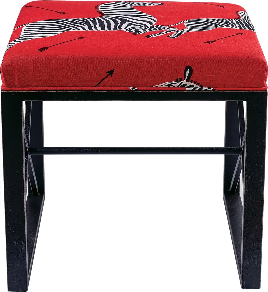 Medallion Zebra Scalamandre Right Facing Single Bench, Red/black