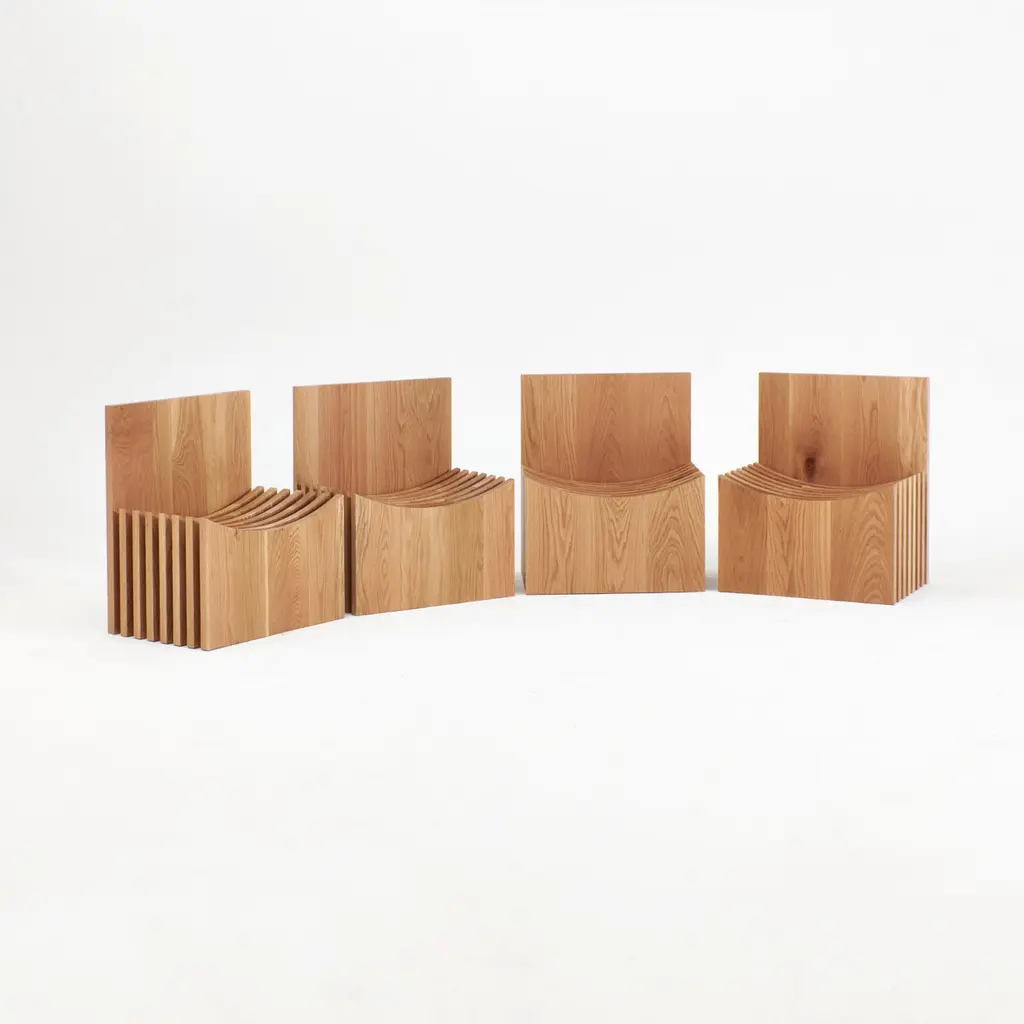 Melides Bench, designed in 2024This bench is a combination of four individual chairs, each formed from 8 slotted elements from which 7 form a curved seat.The bench offers a big variety in how the pieces can be combined.Hand-crafted in solid oak by skilled artisans in Northern Portugal.Made to order. Production lead time: 8-12 weeks
