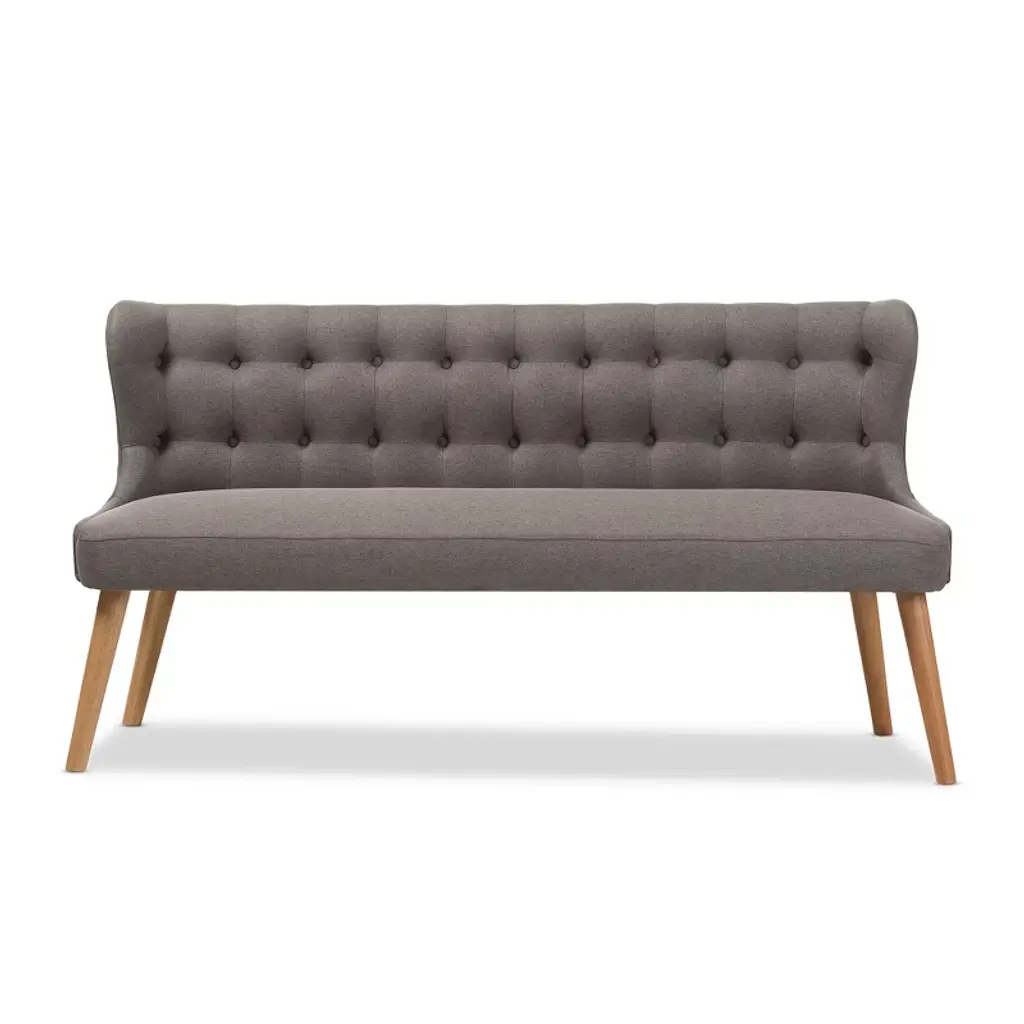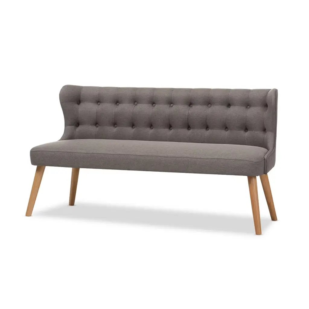 Melody Mid-century Modern Fabric And Natural Wood Finishing 3 Seater Settee Bench Gray - Baxton Studio: Rubberwood Legs, Button-tufted Back