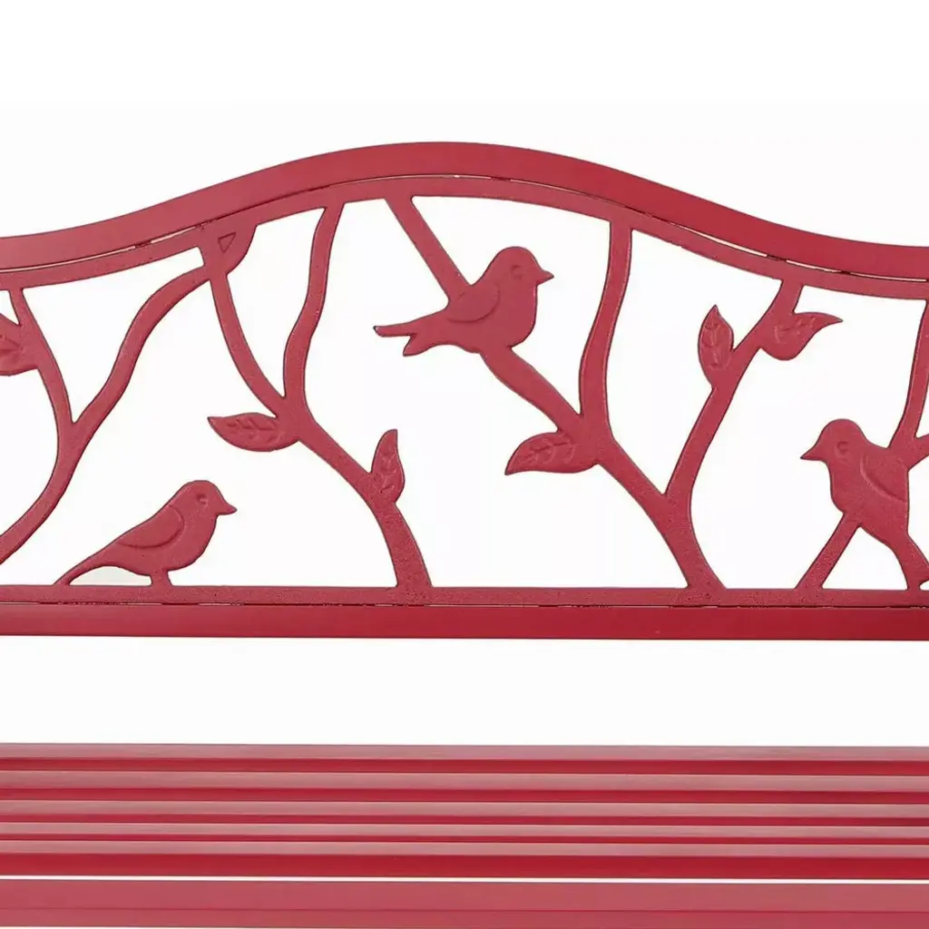 [CAPTIVA DESIGNS]Introducing your outdoor space with our charming Outdoor Patio Metal Park Bench in a vibrant red hue. This bench features a sturdy steel frame designed with a comfortable backrest and armrests, perfect for creating a cozy seating area on your porch, patio, garden, lawn, balcony, backyard, or even indoors. Whether you’re seeking a peaceful spot to unwind or a welcoming focal point for gatherings, this bench offers both functionality and style. Embrace moments of relaxation and togetherness with the inviting design of our bench, where lasting memories are made.[Dimensions]Bench (Overall): 35 Inches (H) x 50 Inches (W) x 23.5 Inches (D)Seat Height (in.): 16 InchesChair Back Height (in.): 21 InchesChair Back Width (in.): 23 InchesChair Weight Capacity (lb.): 500 lbProduct Weight (lb.): 31.8 lbAssembly Time: Within 30 min