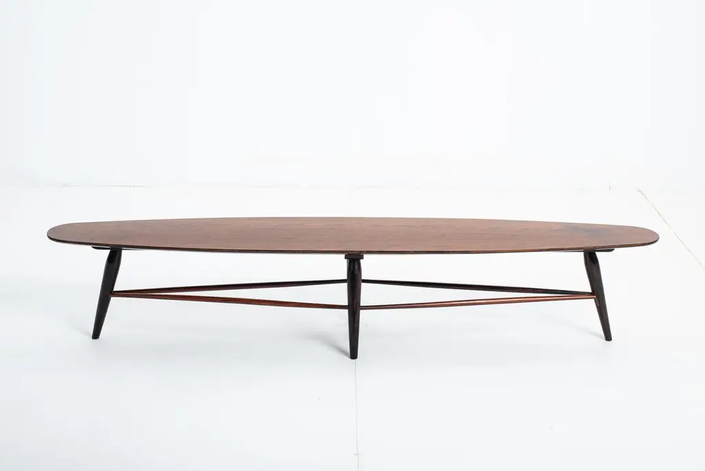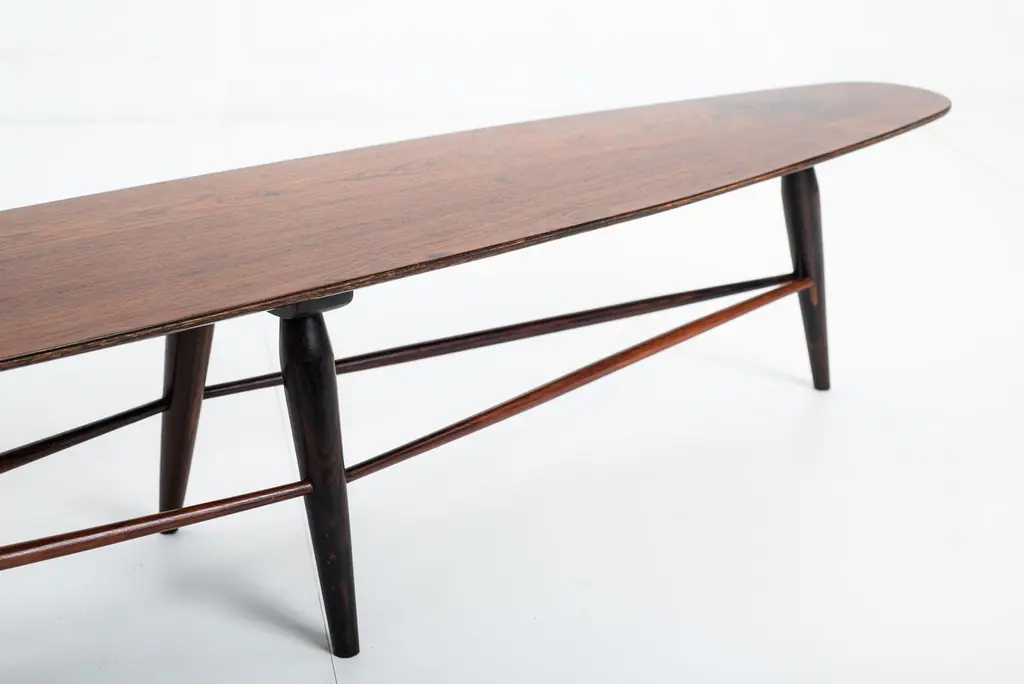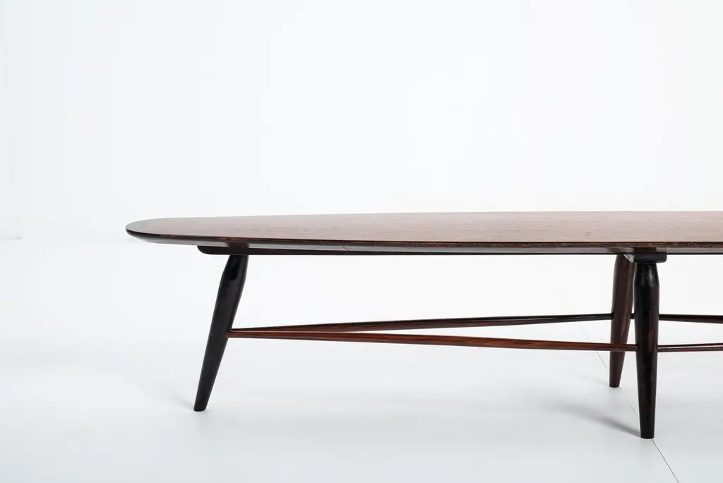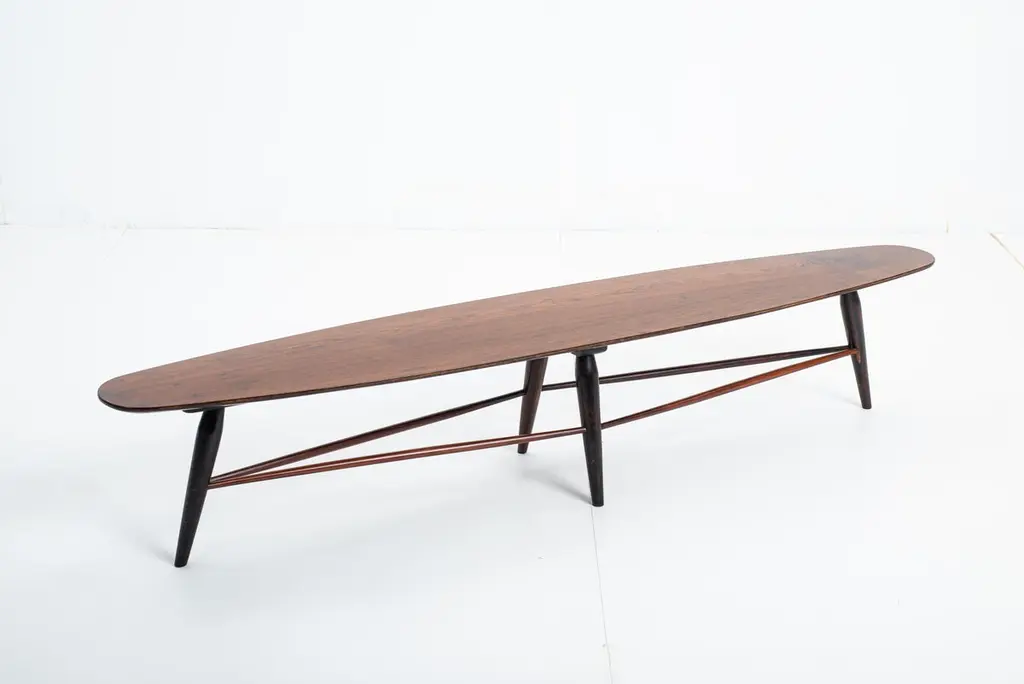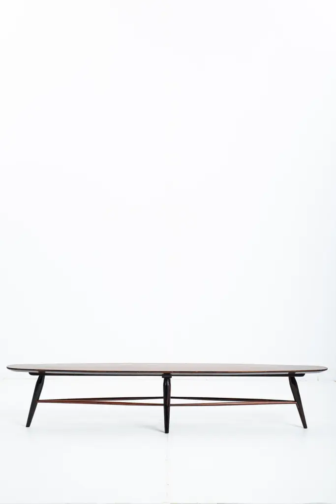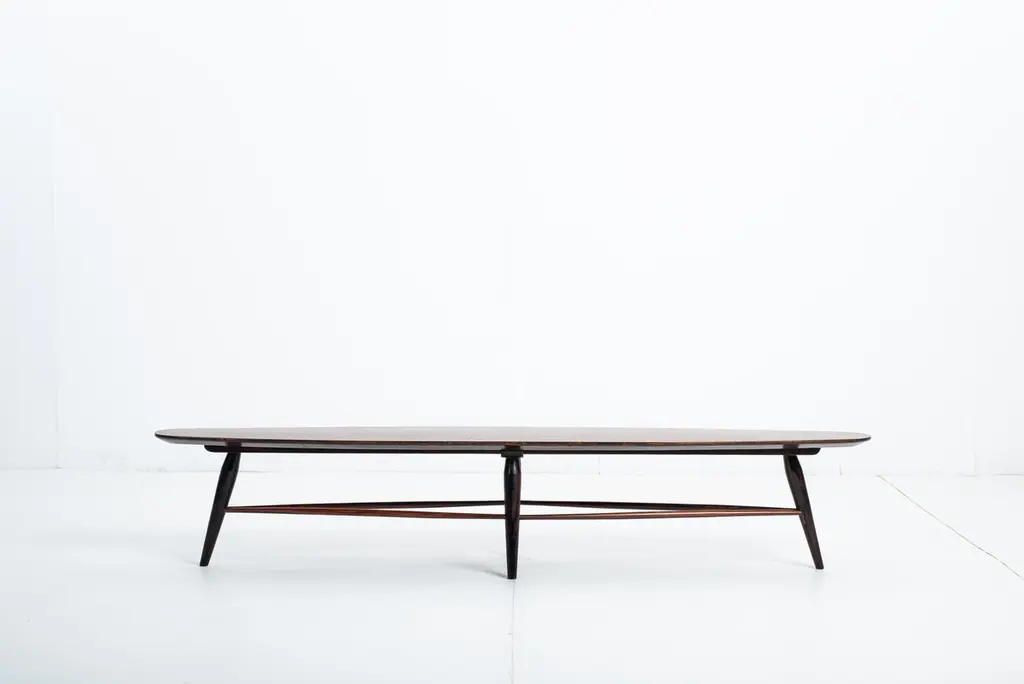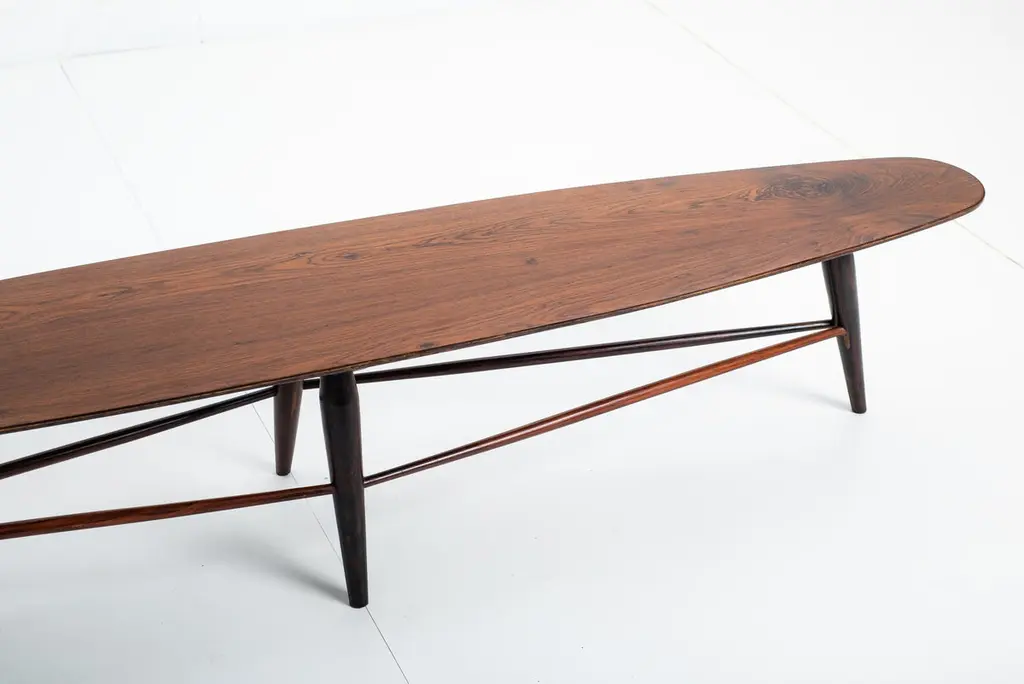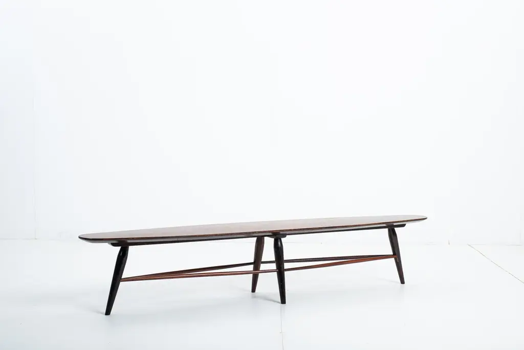 Mid-century bench by Liceu de Artes e Ofícios, Brazil, 1950sStructured in wood with a plywood top, this versatile piece by Liceu de Artes e Ofícios can be used either as a low table or as a bench.