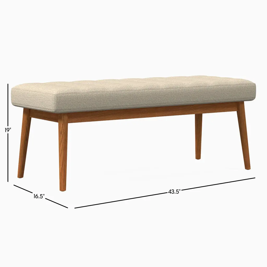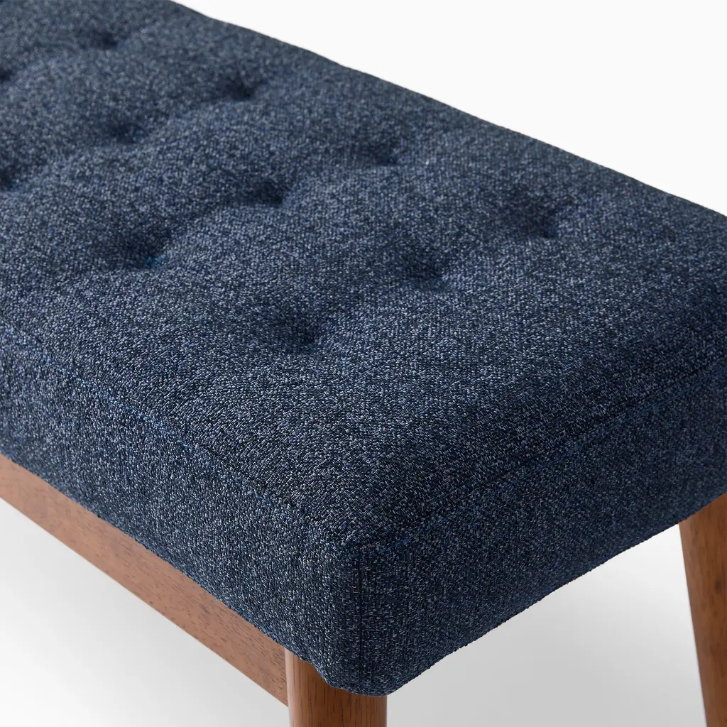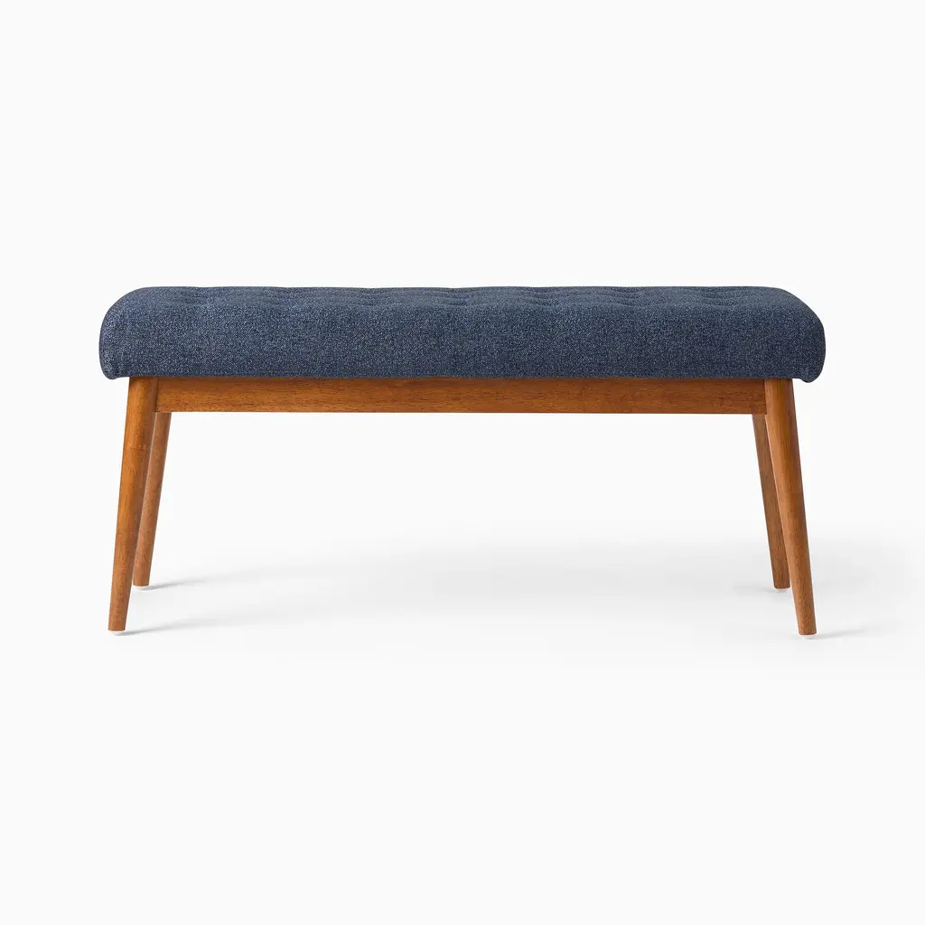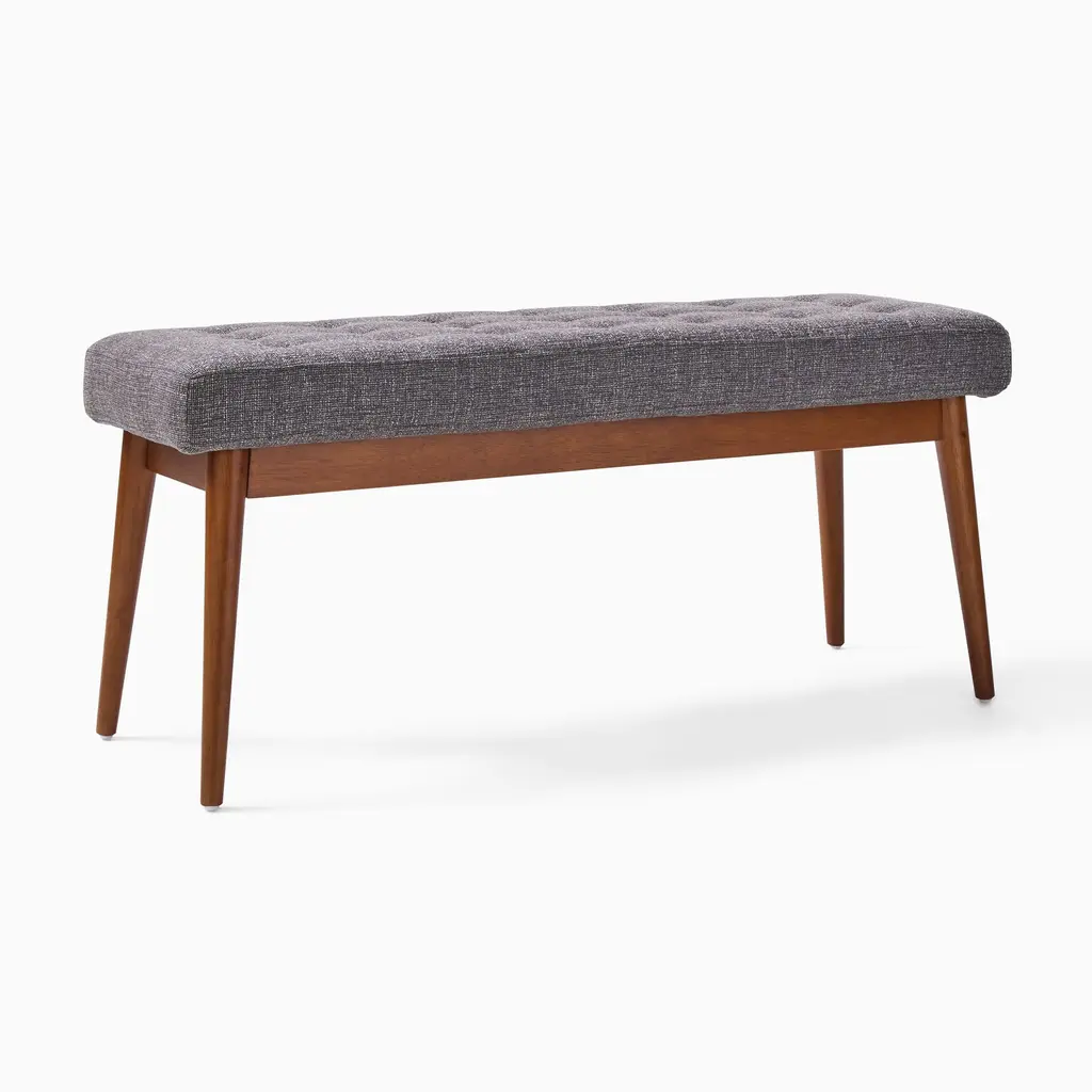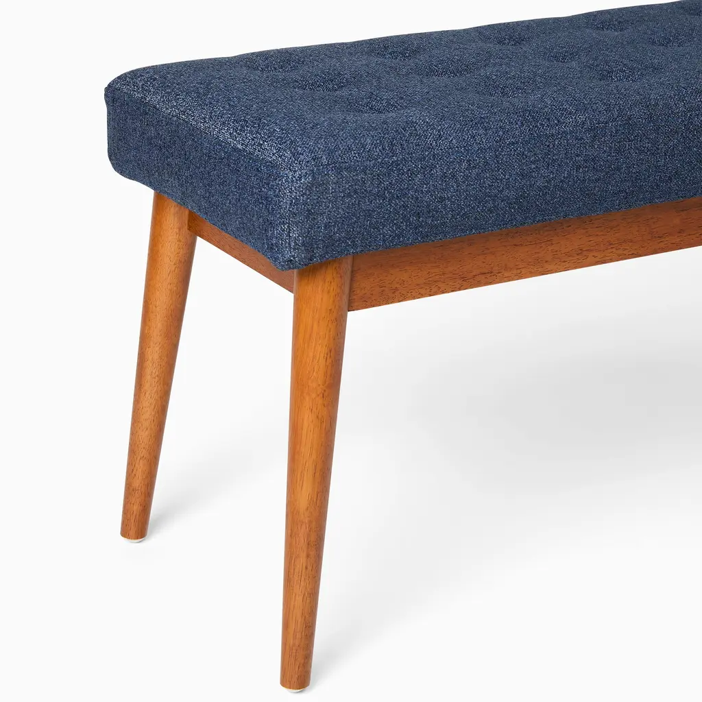 It's mid-century inspired, with a timeless look. Provides easy extra seating in any room you choose. All wood is kiln-dried for added durability. The wood used is sustainably sourced.