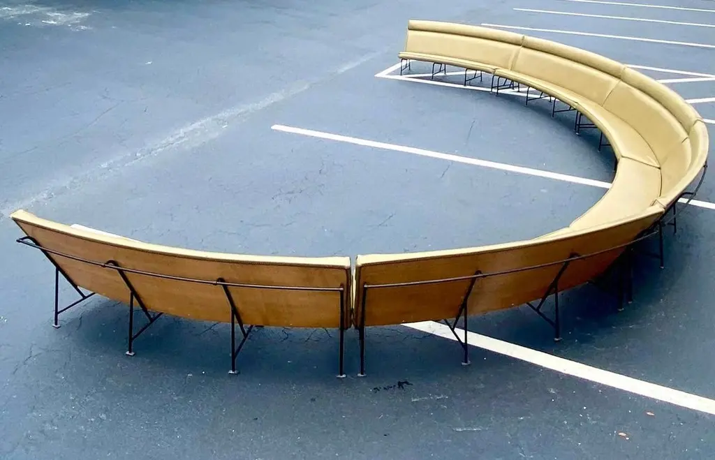 Outstanding Midcentury benched seating. Originally used in the 1966 opening of the Hatter Planetarium at Gettysburg University. Just imagine the new frontiers these benches have seen! Place them in rows for home theater or make them into one gigantic half circle.