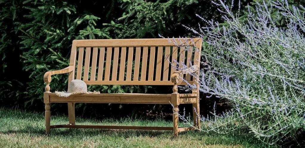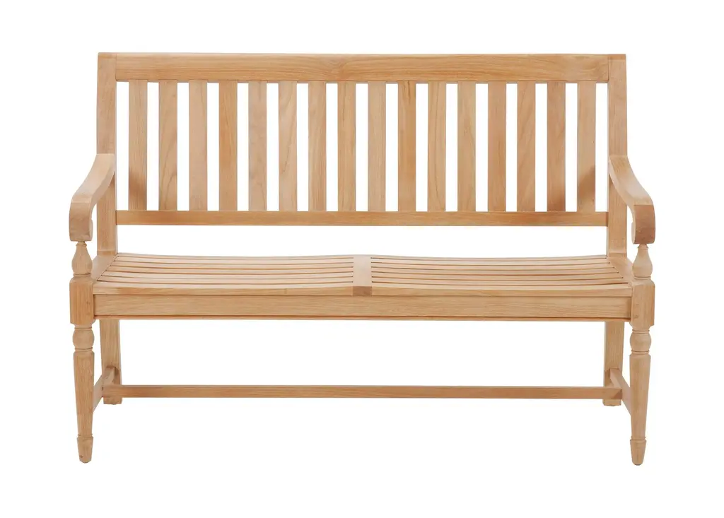 One part English garden. One part West Indies lanai. Our Millbrook collection is built to last and look great doing it. The garden bench has a slatted back, beautifully detailed carved arms, and turned legs. Use with or without cushion.