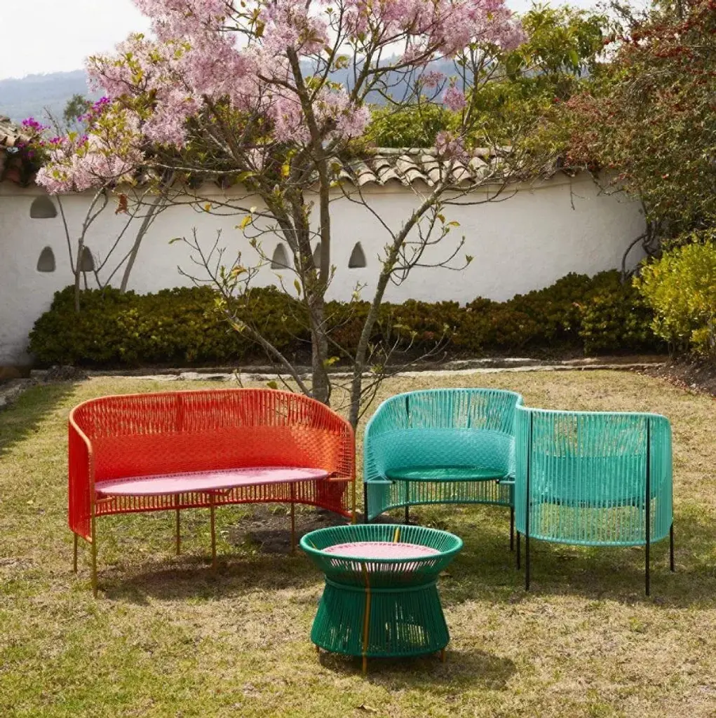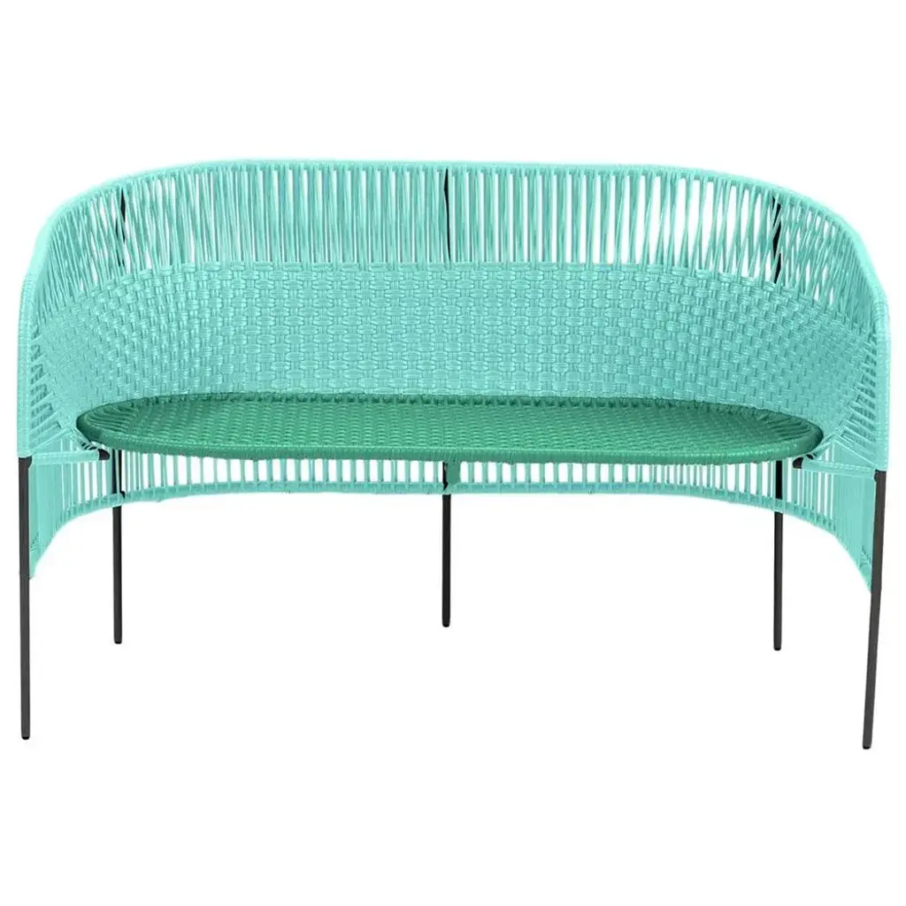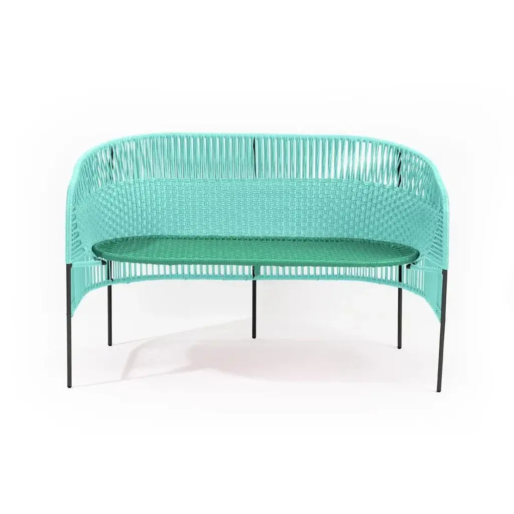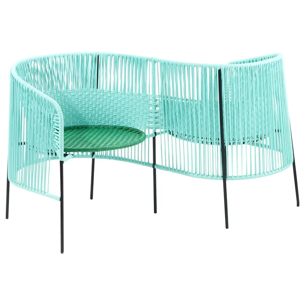 Mint caribe 2 seater bank by sebastian herkner materials: galvanized and powder-coated tubular steel. Pvc strings are made from recycled plastic. Technique: made from recycled plastic and weaved by local craftspeople in colombia. Dimensions: w 112.3 x d 69.6 x h 72 cm also available colors: blue/ mint/ black, mint/ green/ black, orange/ rose/ curry, green/ rose/ curry. The elegant caribe 2 seater bench is a colorful design for seating arrangements inside and outdoors. It’s part of the caribe collection, designed by sebastian herkner for ames. The german designer visited colombia together with ames founder ana maria calderon-kayser and translated the vibrancy and spirit of the country’s people and traditions into joyful, modern furniture pieces defined by clean lines, strong colors, and the hand-woven webbing. Each armchair is made in santa marta, a city on the caribbean coast of colombia, by local craftspeople. They weave the pvc strings, which are made from recycled plastic, around a powder-coated tubular steel frame. The weaving technique the artesanos and artesanas use are called momposino, a traditional method known for intricate patterns. Just the preparation of all the materials takes ten days, while the production of each armchair takes three days. German designer sebastian herkner is a long-term collaborator of ames and has visited colombia multiple times to experience the country’s cities, nature and people first hand. He also visited many of the ateliers that ames has partnered with to learn about the unique traditional crafts of colombia's regions. A sought-after contemporary designer and recipient of many industry awards, he has worked with many international design brands, creating intriguing pieces that showcase his intuition for interesting material, color, and texture combinations