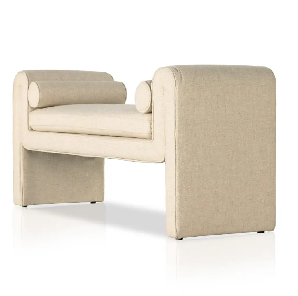 The Mitchell accent bench features trendy folded sides and cream-colored performance upholstery that is perfect to place in your entryway, living room, or at the end of your bed. Performance fabrics are specially created to withstand spills, stains, high traffic and wear, ensuring long-term comfort and unmatched durability.