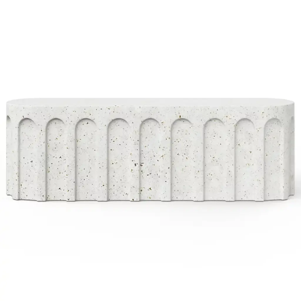 The Mixx Atlas Bench from Urbia is a stunning example of sleek concrete durability blended with urban seating design. This industrial bench offers durable bench construction with the versatility of both indoor and outdoor placement, making it ideal for patio settings or contemporary lounge areas. The minimalist furniture aesthetic of this piece allows it to seamlessly complement any loft-style living room or outdoor bench setup, providing a chic touch of concrete interior design to any space.