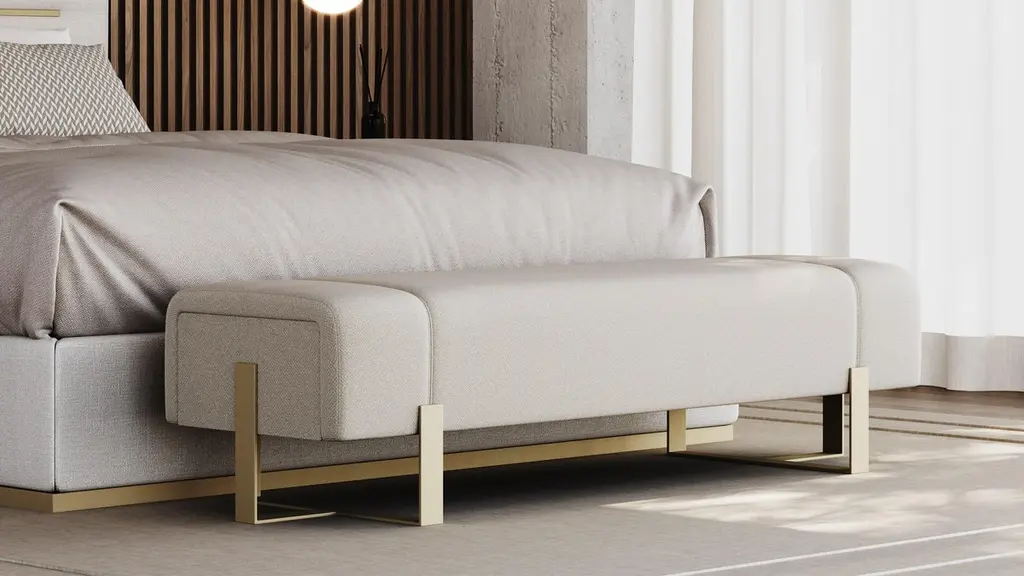 Adeline bench with its refined metal frame and cozy upholstery, is a sanctuary of comfort and style. Its thoughtful design beckons you to sit, unwind, and enjoy a brief respite.