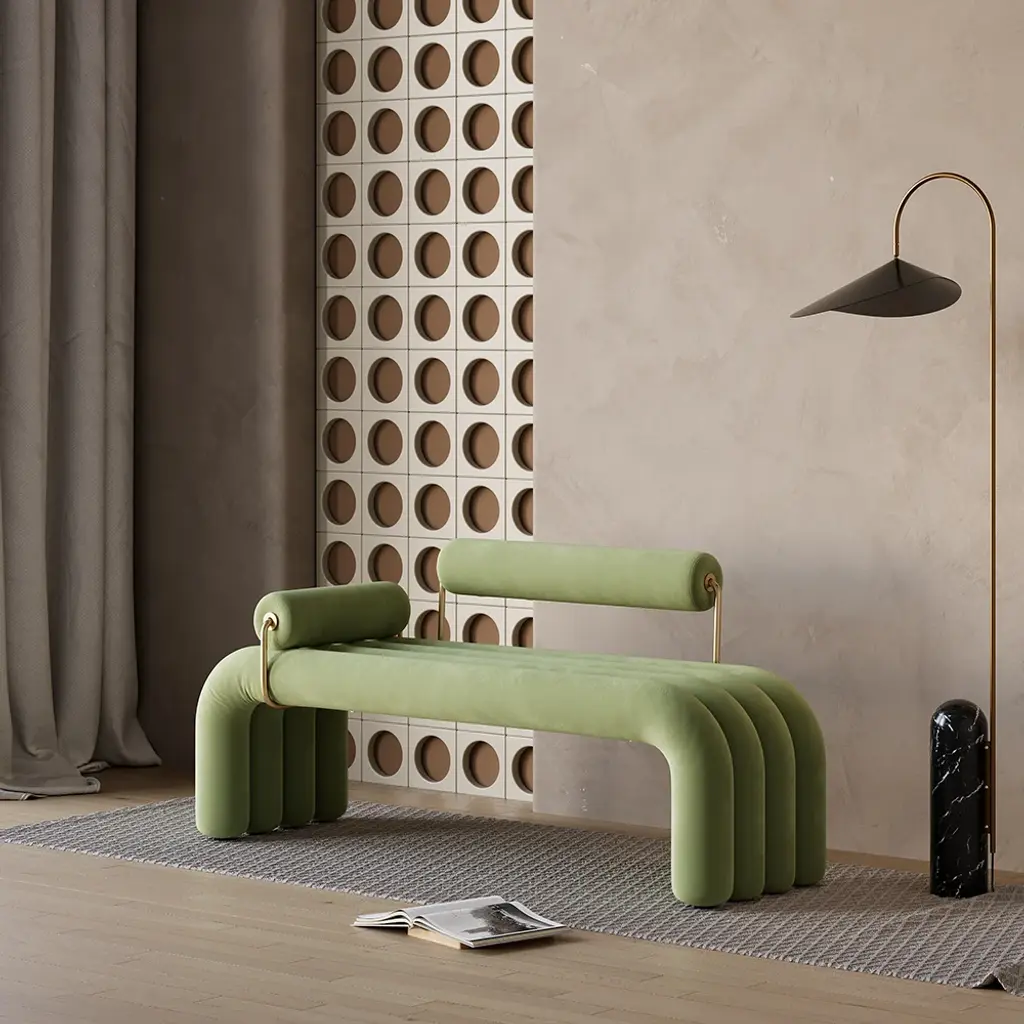 With high-quality velvet, this entryway stool is durable and has a base that can support 132 lbs (60 kg). Soft to the touch, it calms and relaxes; moreover, it is easy to clean and resistant to wrinkles and fading. It is easy to clean. Elegant in style, it fits easily into multiple furniture requirements.