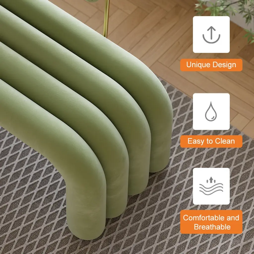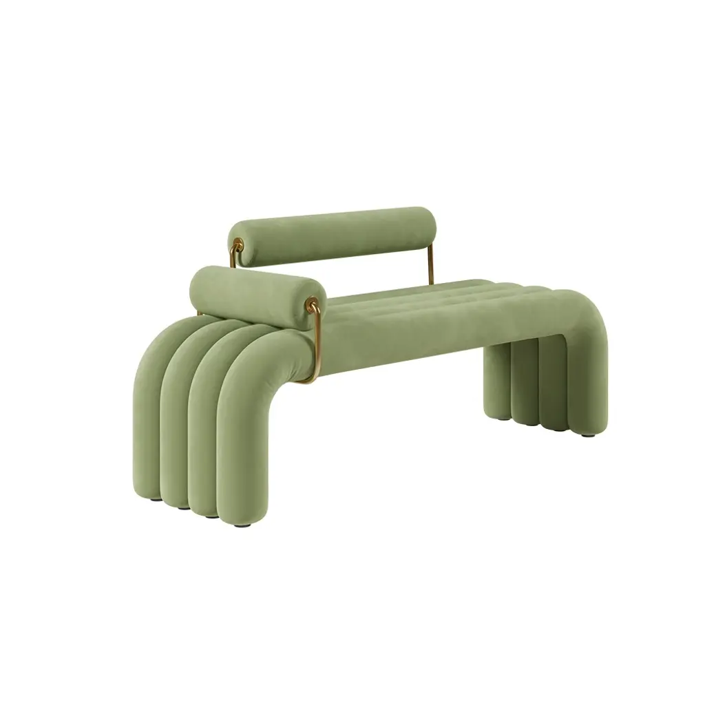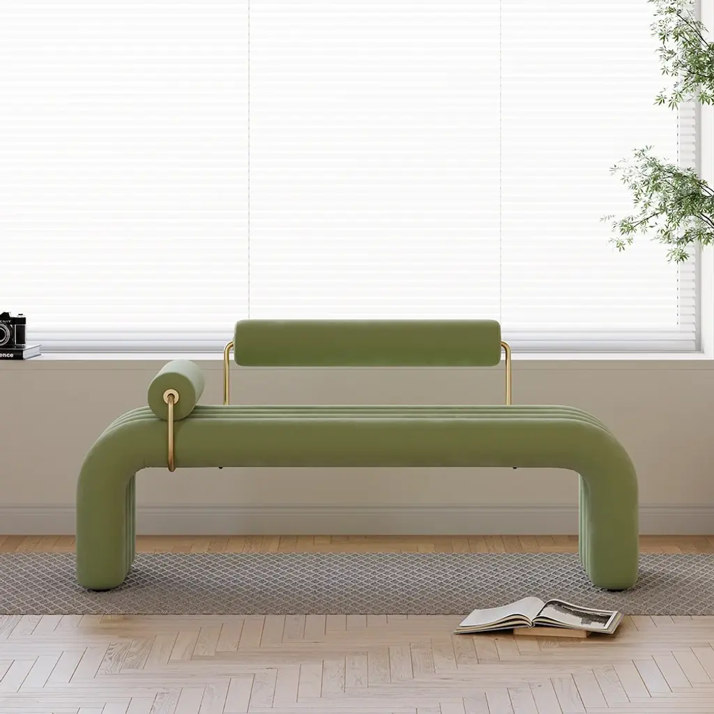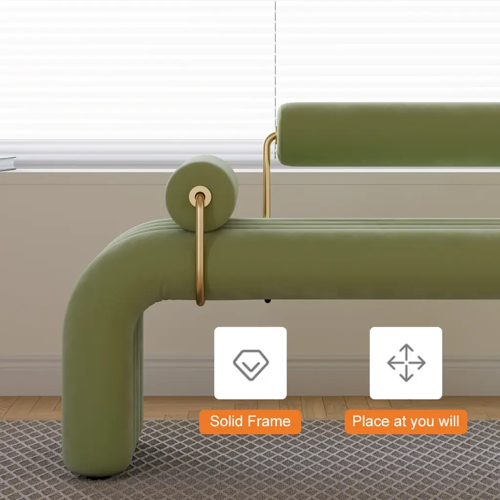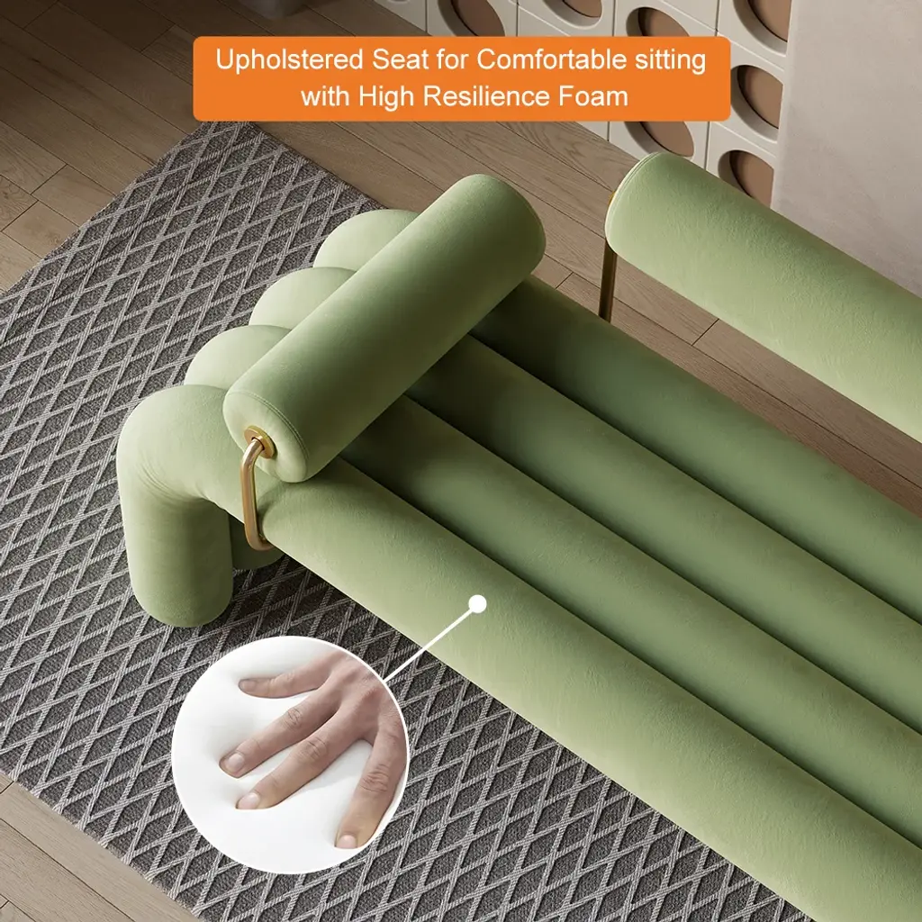 Modern Green Line Tufted Bench Velvet Upholstered Entryway Bench In Gold Finish