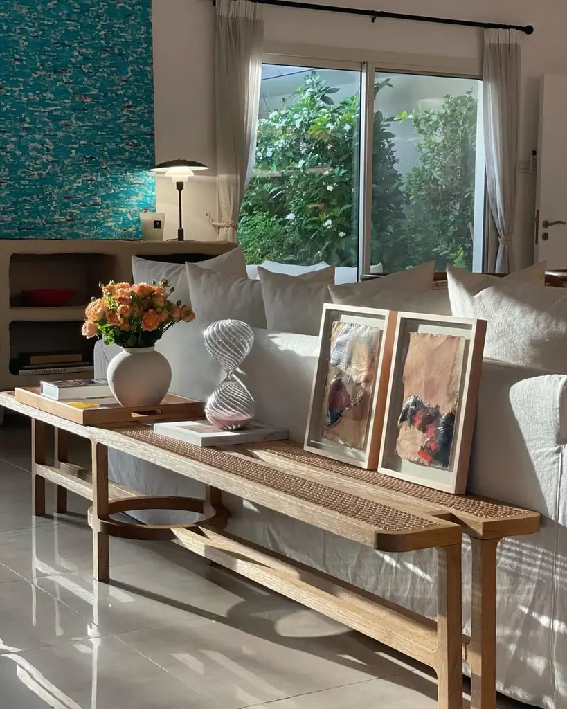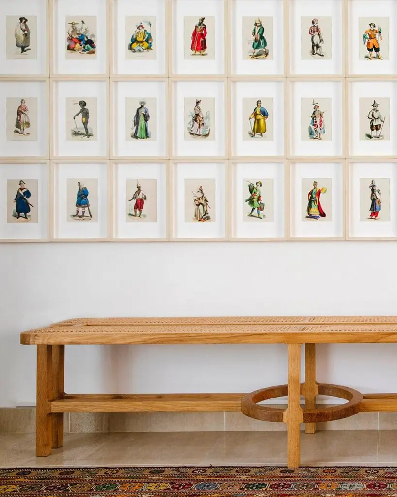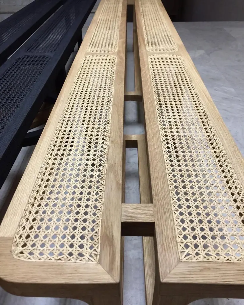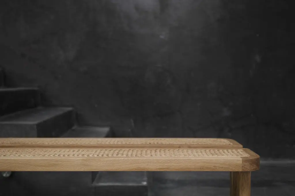 Modern Handcrafted Natural Solid Oak Wood With Cane Weaving Hay Bench, Carla Baz