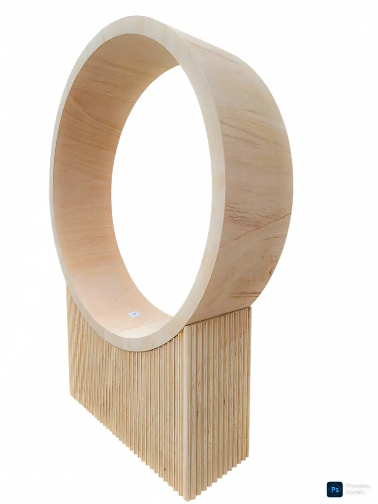 Modern Reeded Moon Bench – Stylish & Functional Seating Our Reeded Moon Bench is a stunning modern statement piece, perfect for children's play and learning spaces. Crafted from durable birch wood, this unique bench stands 6.3 feet tall, 4.5 feet wide, and 17 inches deep. Designed for both style and strength, it supports up to 300 lbs, comfortably seating two adults or four children. Finished in a natural wood tone, it is sealed and clear-coated for long-lasting durability. Ideal for classrooms, play areas, and creative spaces like museums or cafes. This bench combines aesthetics with functionality. Designed and built by SP Fabrication and Design