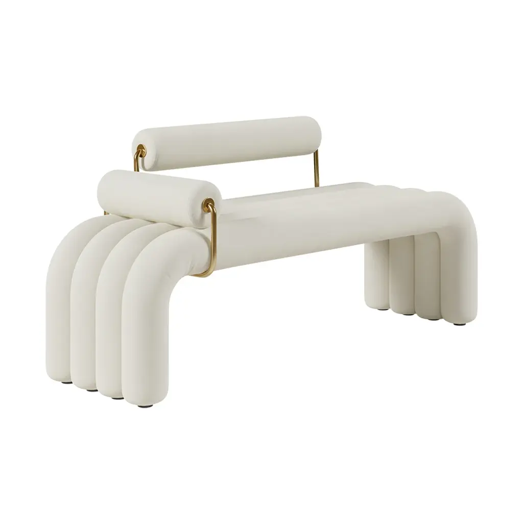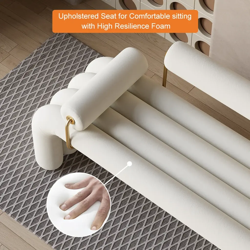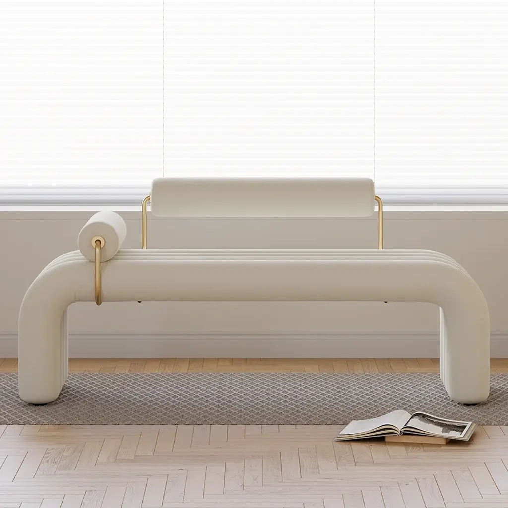 Modern White Line Tufted Bench Velvet Upholstered Entryway Bench In Gold Finish