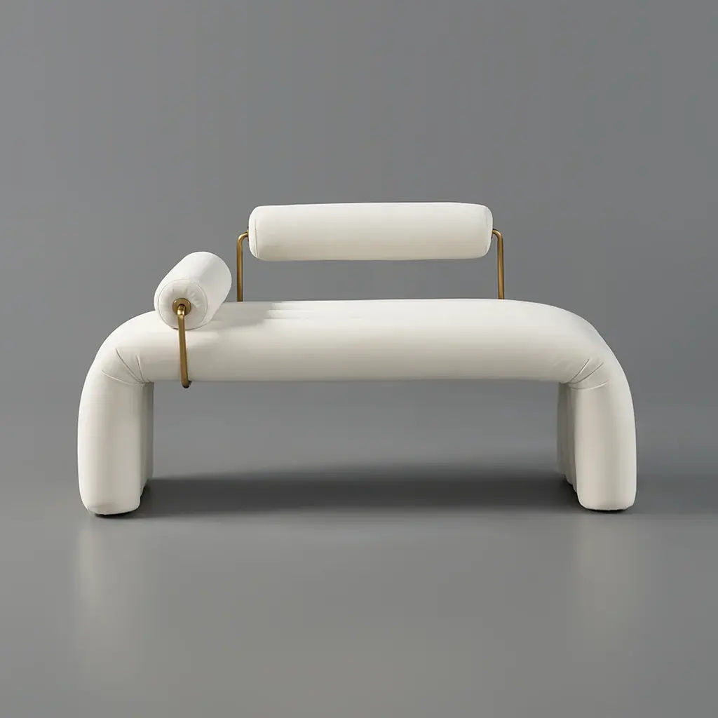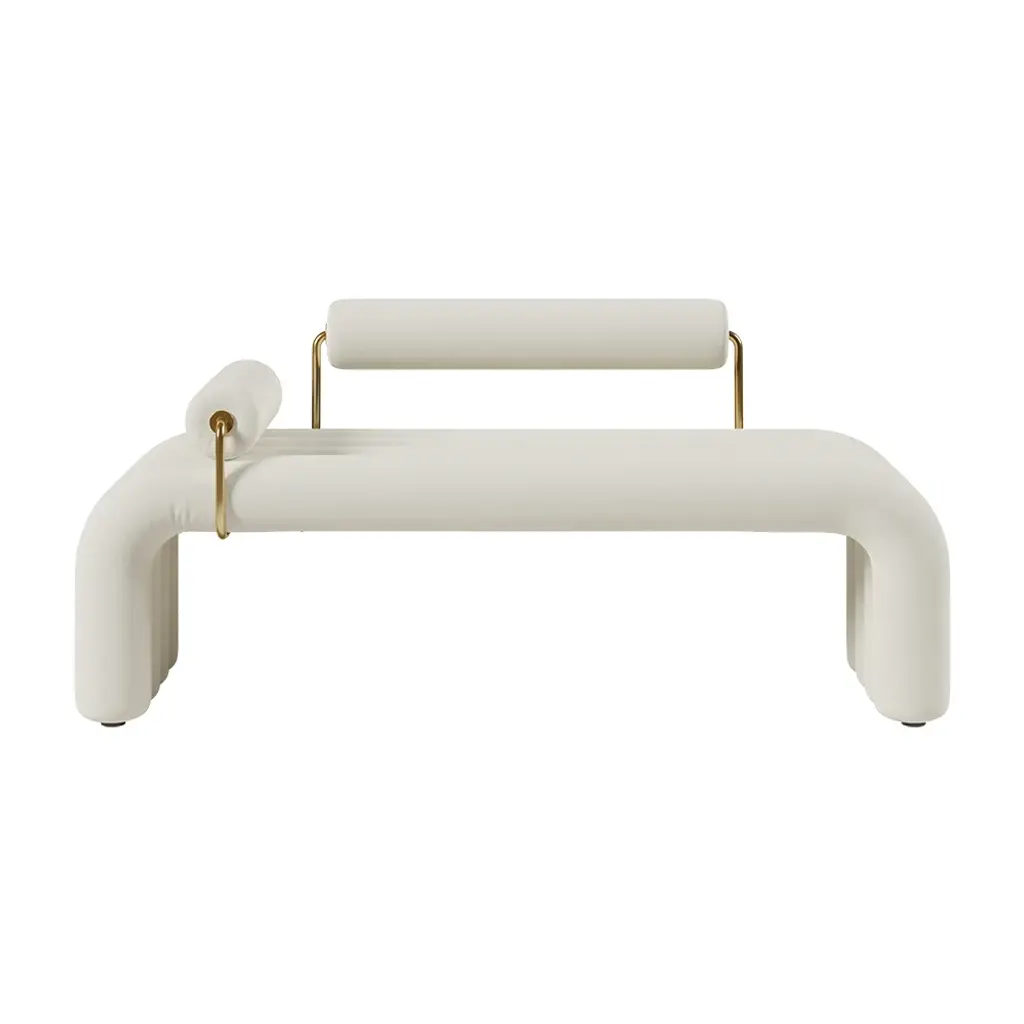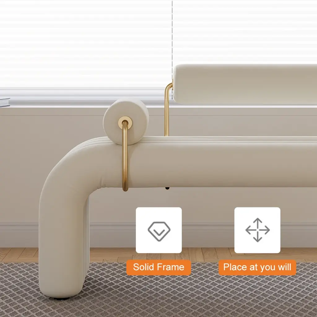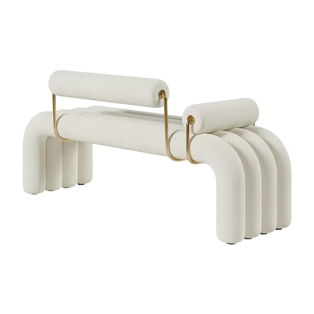 Modern White Line Tufted Bench Velvet Upholstered Entryway Bench In Gold Finish