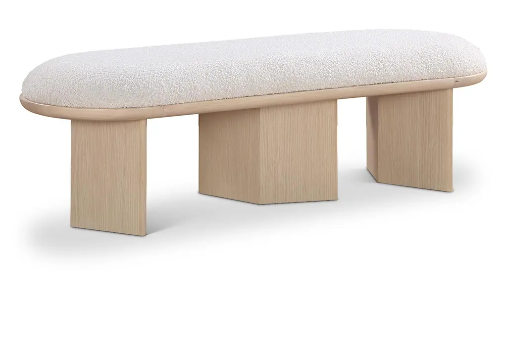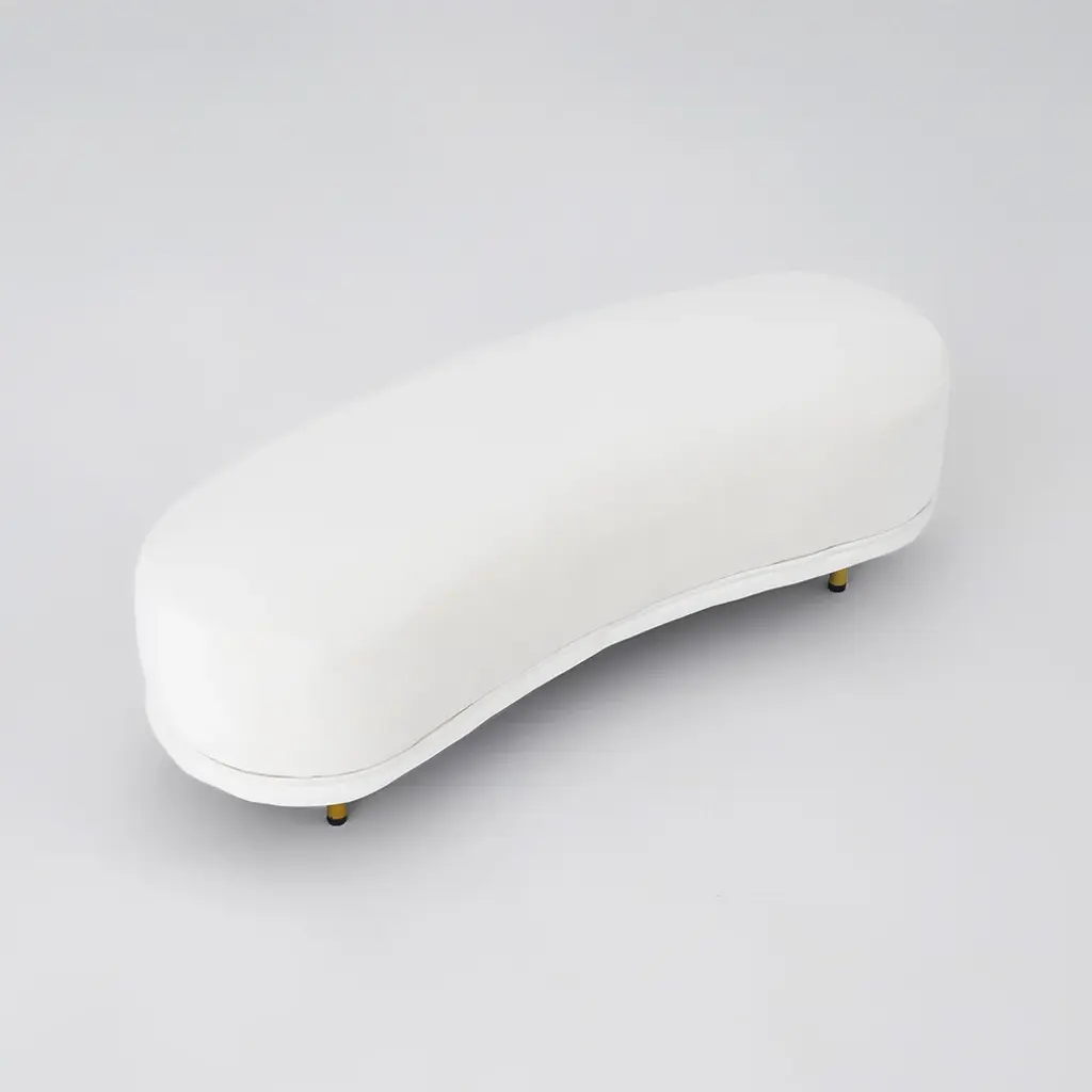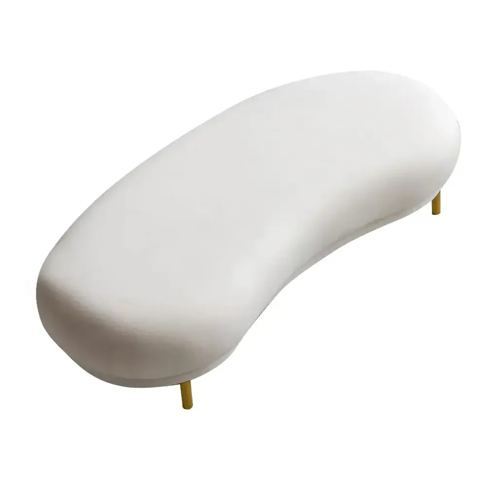 Soft to the touch and visually appealing, this seat is an excellent choice for relaxing at home. This entryway bench has the beauty and comfort to entice even the pickiest customers. An ornamental white curved bench with a metal base is perfect for lounging, staging, and entertaining. You may use this upholstered bench in various settings, including the living room, bedroom, or hallway, where it will provide a sense of calm and coziness.