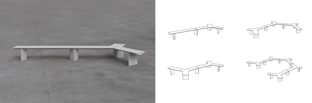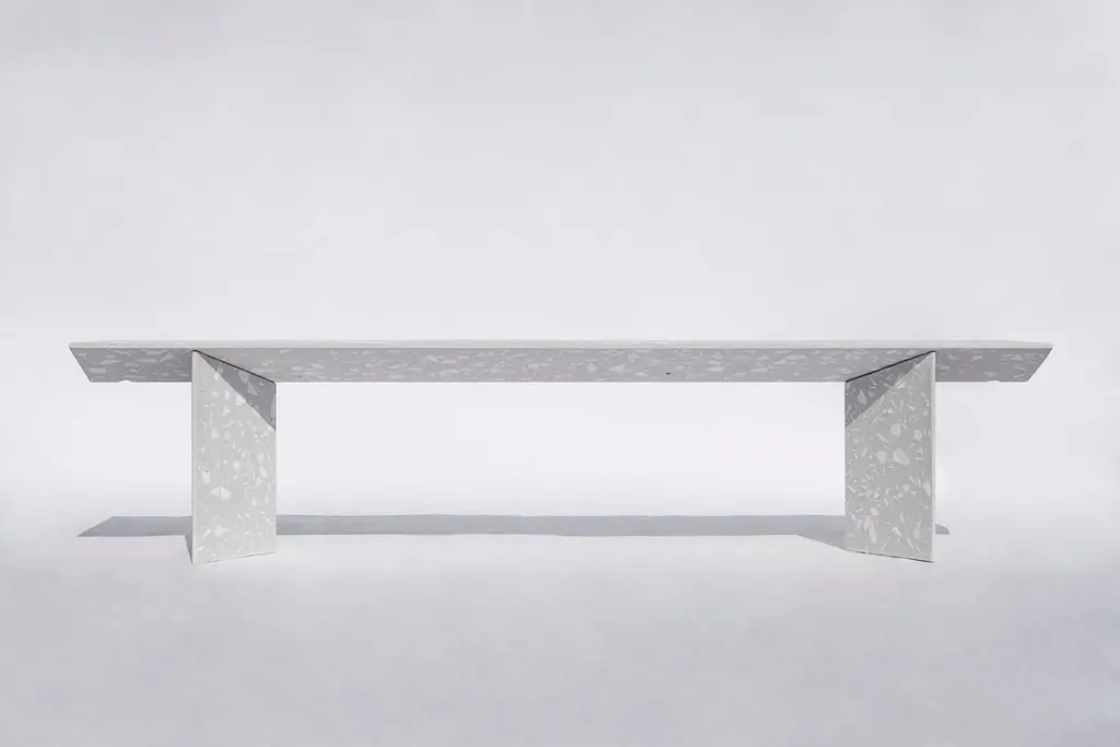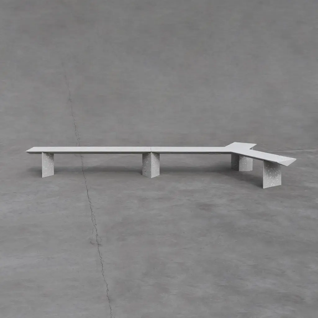LIANG: Modular benches by Bentu DesignConcrete and ceramic waste / TerrazzoMeasures: 2045 × 1700 × 445 mm + 2000 x 400 x 445 mm350 kgOutdoor use: OKAssemble several modules (LIANG 1 and LIANG 2) to create a sculptural bench.--Bentu Desing is a Guangzhou-based experimental design studio that explores concepts of product, space and environment through the invention of new mediums.Bentu does away with superfluous decoration and allows necessity and function to guide design. They believe all elements of an object have equal value – materials, manufacturing techniques, form and cultural influences.The Bentu collections focus on the innovative and sustainable use of materials such as concrete, terrazzo and aluminium. Driven by environmental and social consciousness, Bentu has researched the re-use of construction waste in their exploration of new forms and finishes.These initiatives combined with new technologies have transformed humble materials into beautiful objects that verge on functional art. After collecting a string of international awards, Bentu has joined an elite group of global designers making their mark in pioneering contemporary design.