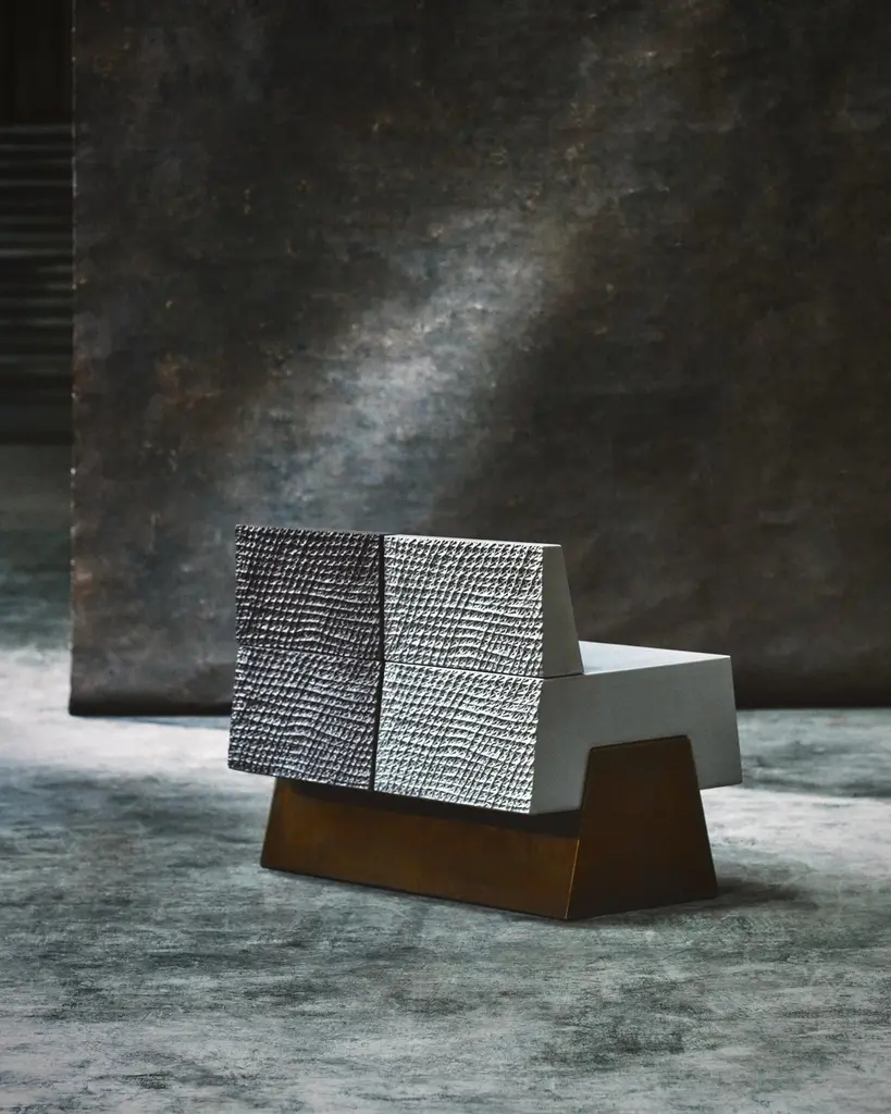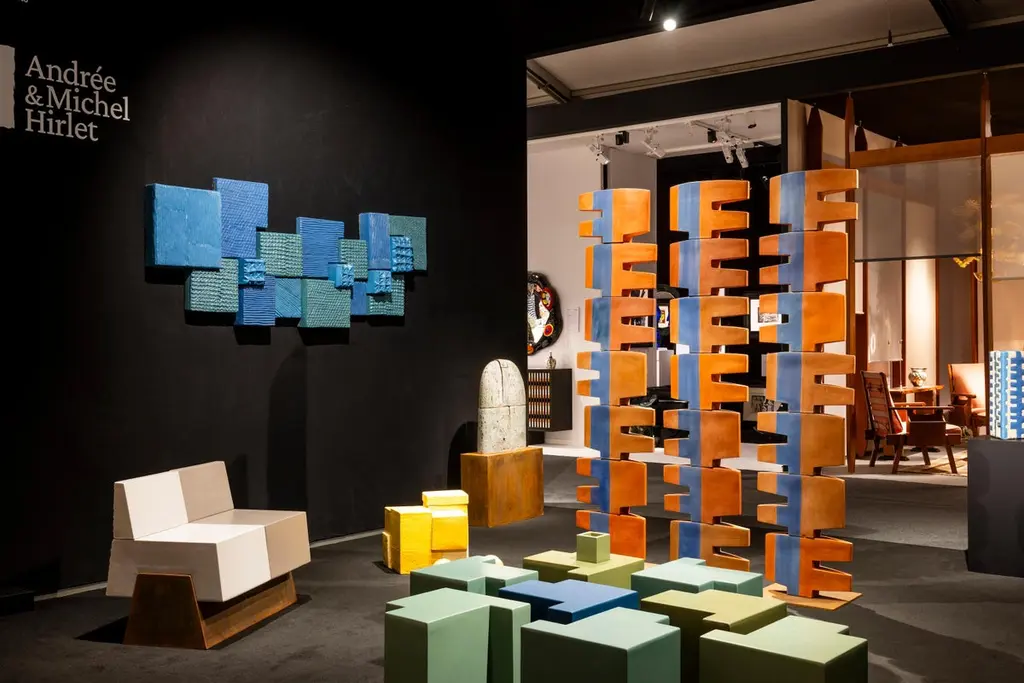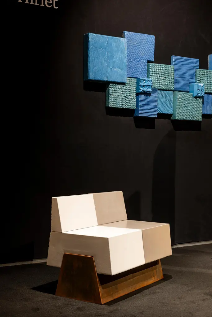 Modular Bench/Loveseat by Andrée & Michel HirletMaterial: Glazed stonewareDimensions: H 70 x 94 x 55 cmYear: 122025Rhis new piece results from a limited-edition series based on the duo’s research from the 1970s—works that had been set aside, waiting to be revisited.Rested on a metal base, the modular elements can be positionned as a traditional bench or as a loveseat and ordered in a variety of colours and in any quantity required to create custom, made-to-measure compositions.Numbered and signed, made in France.