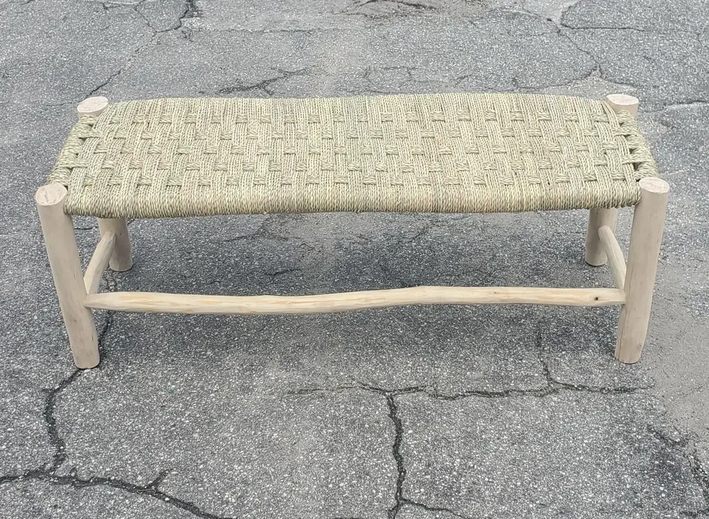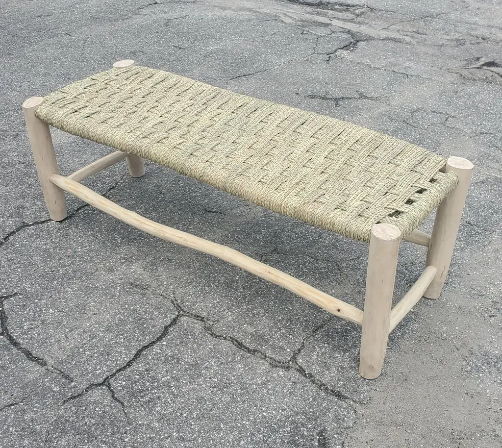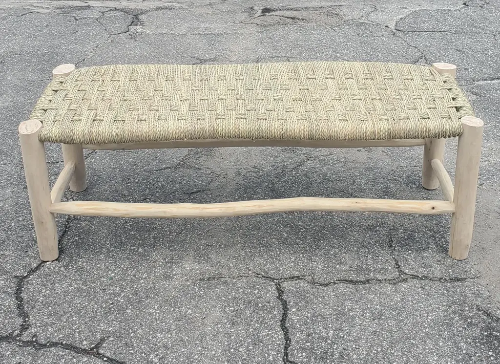 Moroccan traditional straw bench made in Marrakech. Very sturdy and long lasting. Perfect for entryways, living rooms, covered decks and balconies, or any other relaxing areas. Can also be used in offices, work and waiting areas... This amazing handmade bench measures approximately 47" in length, 17" in width, and 16" in depth.