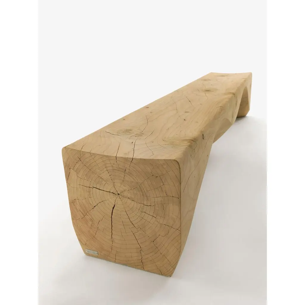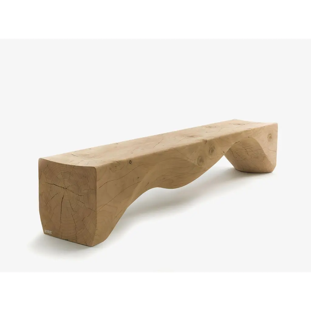 Crafted from solid cedarwood, the Mountains Bench by Riva1920 is a sculptural masterpiece that brings the raw beauty of nature into contemporary interiors. Carved from a single block of aromatic cedar, this bench showcases the natural grain and rich, warm tones of the wood, highlighting its organic charm. The flowing design mimics the undulating peaks of mountain ranges, creating a striking visual element that adds both function and artistic form to any space. Each piece is unique, with natural variations in the wood grain, ensuring no two benches are exactly alike. The cedarwood’s aroma enhances the sensory experience, evoking the freshness of a mountain forest, while its durability promises long-lasting appeal. Ideal for modern living spaces, entryways, or even outdoor environments, the Mountains Bench seamlessly blends elegance, nature, and craftsmanship. This product is crafted from solid cedar wood. Due to the natural properties of solid cedar, the following changes may occur over time, especially when placed outdoors:1. Cracks, splits, and movements in the wood are expected and should be viewed as a normal part of the material’s aging process rather than a defect. If used outdoors, these movements will be more pronounced and frequent. 2. When exposed to outdoor elements, cedar will gradually turn grey due to UV exposure and moisture. This transformation is unavoidable and occurs naturally over time.3. The appearance of mold spots or surface deposits is a natural reaction of cedar, particularly when stored in transport crates for extended periods, or covered for too long. If mold spots appear, follow these maintenance steps: - Use the provided brush to remove surface residue.- Wash the affected area with water.- Allow the piece to dry in a well-ventilated area.4. Cedar wood contains natural resins, which may surface over time, particularly on the top or bottom of the product. To prevent staining, avoid placing cedar furniture directly on carpets or soft surfaces that restrict airflow.General Care Recommendations-Keep cedar products in dry, well-ventilated spaces.-If used outdoors, understand that significant aging effects will occur, including color fading, deeper cracks, and more pronounced wood movement.By purchasing and using this product outdoors, the buyer fully accepts these natural transformations as part of the wood’s aging process.Shipping Note: Our pricing includes all costs for international shipping to the U.S., as well as duties and customs clearance fees. Please be aware that local delivery within the U.S. is not included. We offer white glove, front door, and warehouse delivery options. For shipments outside the U.S., kindly reach out to us for a detailed quote.We do our best to expedite production and to ship and deliver product within the listed lead time, however current lead times might be longer due to global shipping backlog and delays. These delays are out of our control and cannot be a reason to cancel an order.