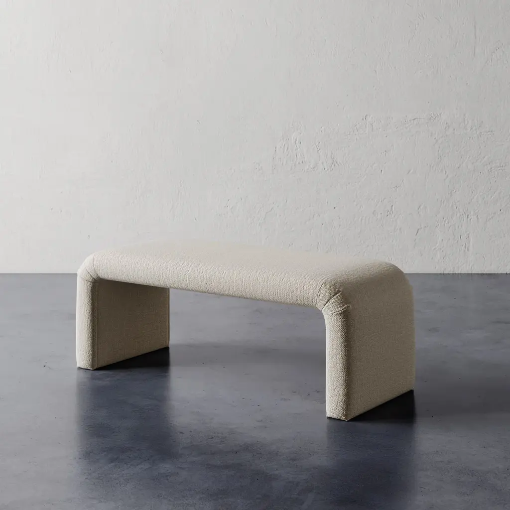 The Nadia Bench is a study in sculptural simplicity, designed with graceful curves and refined, hand-tailored pleating at each corner. Fully upholstered for a soft, streamlined look, it brings visual balance and subtle luxury to any space. Available in two versatile lengths—62" and 48"—it’s ideal for hallways, entryways, or placed at the foot of a bed. Both functional and artful, the Nadia Bench is a made-to-order piece that reflects thoughtful craftsmanship and timeless design.