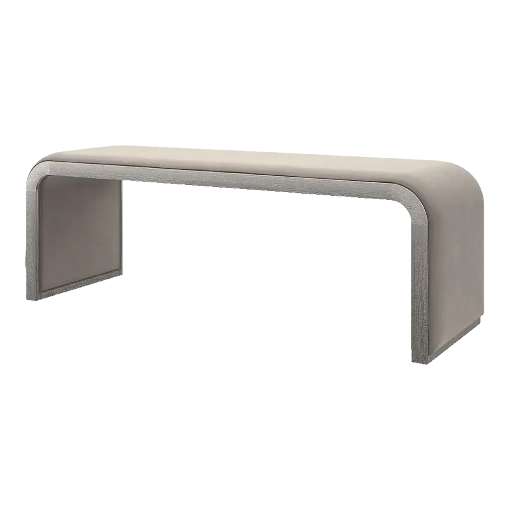 The Nadia Bench is a study in sculptural simplicity, designed with graceful curves and refined, hand-tailored pleating at each corner. Fully upholstered for a soft, streamlined look, it brings visual balance and subtle luxury to any space. Available in two versatile lengths—62" and 48"—it’s ideal for hallways, entryways, or placed at the foot of a bed. Both functional and artful, the Nadia Bench is a made-to-order piece that reflects thoughtful craftsmanship and timeless design.