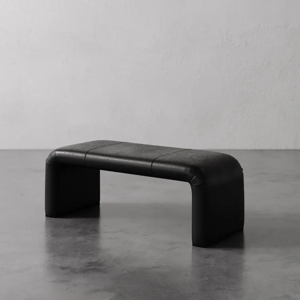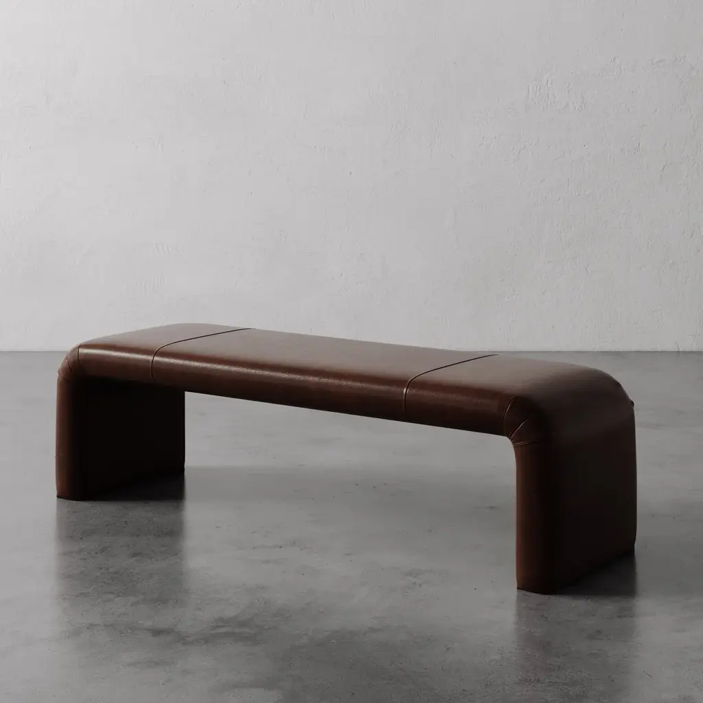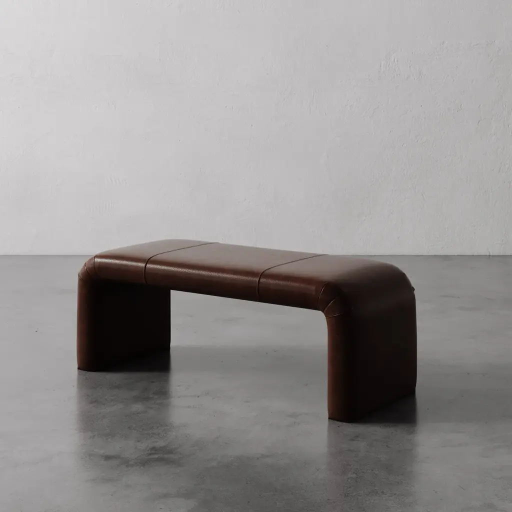 The Nadia Leather Bench is a study in sculptural simplicity, designed with graceful curves and refined, hand-tailored pleating at each corner. Fully upholstered for a soft, streamlined look, it brings visual balance and subtle luxury to any space. Available in two versatile lengths—62" and 48"—it’s ideal for hallways, entryways, or placed at the foot of a bed. Both functional and artful, the Nadia Bench is a made-to-order piece that reflects thoughtful craftsmanship and timeless design.