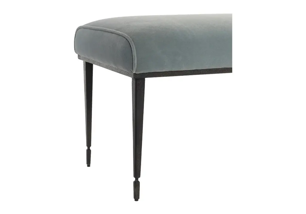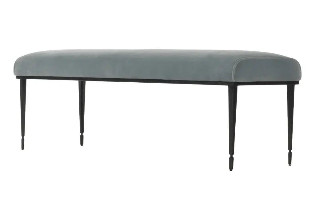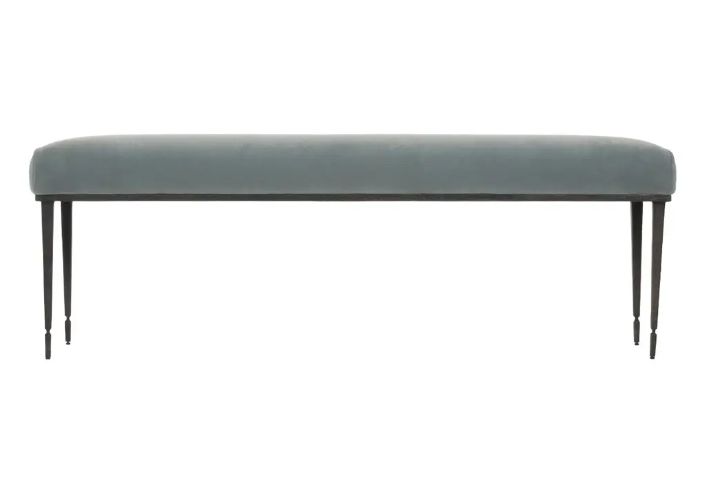 The Nellie makes a high-fashion statement with its warm, incredibly soft capri vegan mohair upholstery elevated by a bronze metal base. Its clean, crisp legs feature a notched ankle for an added touch of dimension. Style at the end of a bed or in an entryway for a casual, elegant design.